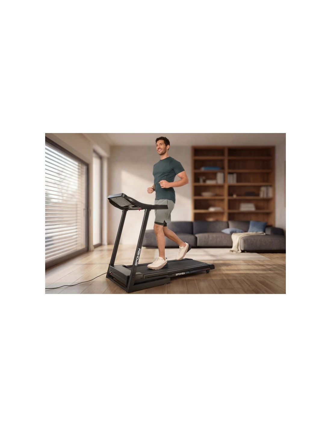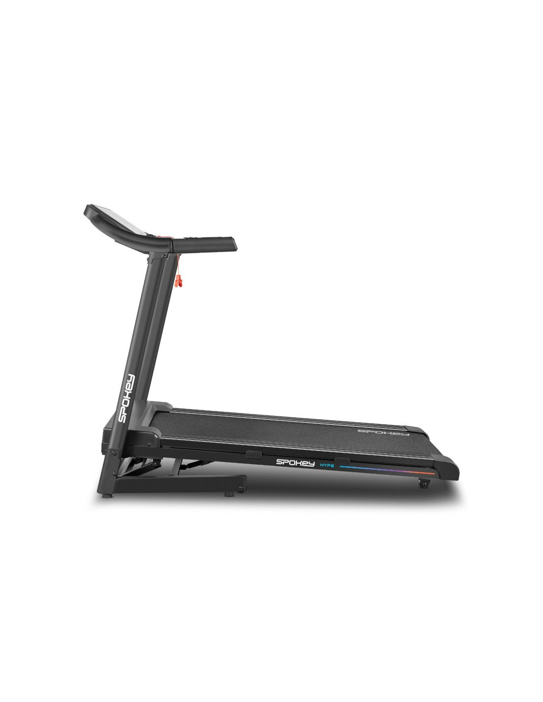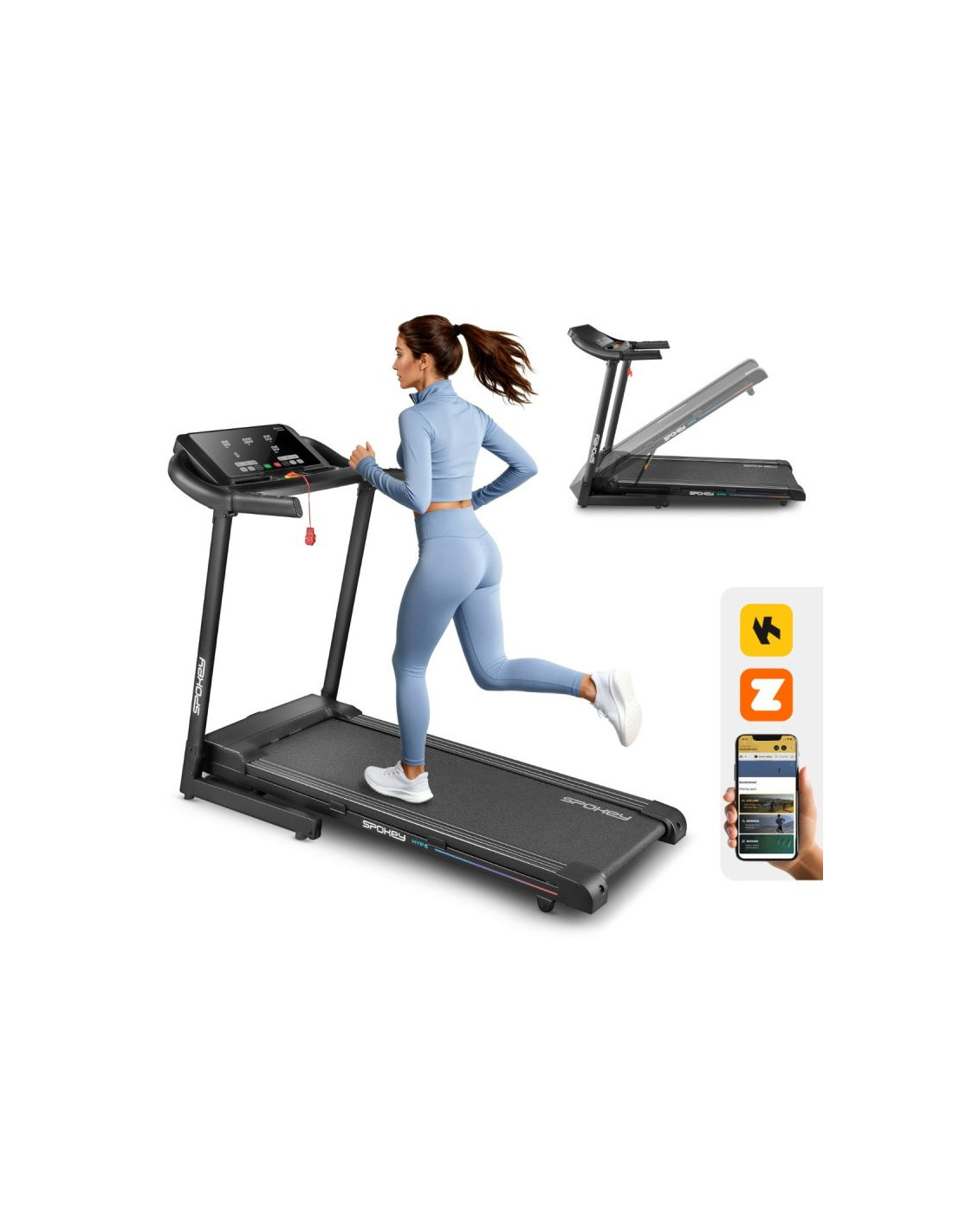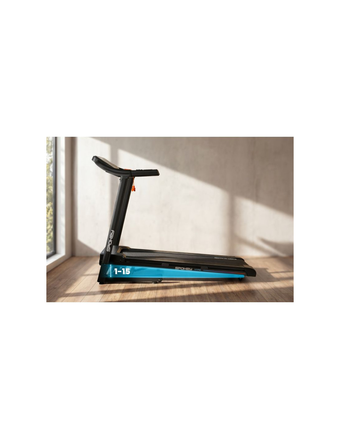 Bieżnia elektryczna Spokey HYPE – składana, z automatycznym nachyleniem i 15 programami treningowymi Składana bieżnia elektryczna Spokey HYPE z automatyczną regulacją nachylenia (1–15%), 15 programami treningowymi i możliwością personalizacji dla 3 użytkowników. Wyposażona w duży ekran LED, amortyzację, czujniki pulsu oraz praktyczne uchwyty na tablet i butelkę z wodą. Idealna do codziennych treningów w domu. Wprowadzenie Spokey HYPE to domowa bieżnia, która łączy wygodę użytkowania z szerokimi możliwościami treningowymi. Wyposażona w automatyczną regulację kąta nachylenia, 15 programów oraz możliwość personalizacji planów aż dla 3 użytkowników, pozwala dopasować trening do indywidualnych potrzeb. Dzięki składanej konstrukcji, amortyzacji i praktycznym uchwytom na tablet i bidon z wodą, bieganie w domu z bieżnia HYPE staje się naprawdę komfortowe i motywujące. Dlaczego warto wypróbować bieżnię elektryczną Spokey HYPE? 15 programów treningowychBogaty zestaw 15 gotowych programów treningowych pozwala na urozmaicenie ćwiczeń i dopasowanie intensywności do Twoich możliwości. Każdy z nich został podzielony na 20 sekcji, w których prędkość i nachylenia zmienia się automatycznie – to świetny sposób na symulację zróżnicowanych warunków i uniknięcie monotonii w trakcie biegu. 3 personalizowane programyBieżnia umożliwia stworzenie i zapisanie własnych planów treningowych dla 3 oddzielnych użytkowników. Dzięki temu każdy domownik może szybko wybrać swój tryb i trenować zgodnie z indywidualnymi potrzebami, bez konieczności ponownego ustawiania parametrów. Uchwyt na tablet i butelkęPodczas treningu wszystko, czego potrzebujesz, masz zawsze pod ręką – ulubiony napój w zasięgu dłoni i tablet lub smartfon, na którym możesz oglądać film, słuchać muzyki albo korzystać z aplikacji treningowych. To połączenie wygody i motywacji. AmortyzacjaSystem amortyzacji skutecznie pochłania wstrząsy powstające w czasie biegu, co odciąża stawy i zapewnia większy komfort. Dzięki temu każdy trening staje się przyjemniejszy i bardziej efektywny dla organizmu, nawet podczas dłuższych sesji. Szczegółowy opis Bieżnia elektryczna Spokey HYPE to Twój sposób na efektywny trening bez wychodzenia z domu. Mocny silnik 1,75 HP pozwala rozpędzić się do 14 km/h – idealnie zarówno do energicznych marszów, jak i intensywnego biegania. Szeroki pas biegowy (122 × 40 cm) daje pełną swobodę ruchu, a system amortyzacji sprawia, że każdy krok jest komfortowy i płynny. Trenuj kiedy chcesz i na własnych zasadach! Dzięki 15 programom treningowym możesz łatwo dopasować intensywność ćwiczeń, a personalizacja dla aż 3 osób sprawia, że każda z nich może korzystać z bieżni w wygodny sposób. Duży ekran LED na bieżąco wyświetla najważniejsze dane, a czujniki pulsu wbudowane w poręcze umożliwiają monitorowanie tętna. Bieżnia HYPE została zaprojektowana z myślą o oszczędności miejsca – można ją złożyć i przechowywać w pozycji pionowej, a kółka transportowe ułatwiają jej przemieszczanie. Praktyczne detale, takie jak uchwyt na tablet i butelkę, podnoszą komfort korzystania z bieżni, a klucz bezpieczeństwa zapewnia dodatkową ochronę podczas treningu. Dane techniczne Typ: bieżnia elektryczna Moc silnika: 1,75 HP Maksymalna prędkość: 14 km/h Nachylenie: automatyczne: 1–15% Wyświetlacz: LED Funkcje wyświetlacza: czas, dystans, prędkość, puls, kalorie Programy treningowe: 15 + 3 personalizowane Pomiar pulsu: tak Pas biegowy: 122 × 40 cm Wymiary: 143 × 67 × 111 cm Wymiary po złożeniu: 64 × 67 × 135 cm Waga urządzenia: 47 kg Maksymalna waga użytkownika: 110 kg Składanie: hydrauliczne Uchwyt na tablet i butelkę: tak Kółka transportowe: tak Bluetooth: tak Certyfikaty, normy i ostrzeżenia Zgodność z normami bezpieczeństwa UE. Produkt przeznaczony wyłącznie do użytku domowego. Urządzenie nie jest przeznaczone dla dzieci. Użytkowanie i pielęgnacja Przed pierwszym użyciem upewnij się, że bieżnia stoi na stabilnym i równym podłożu. Zaleca się umieszczenie sprzętu na macie amortyzującej, aby zmniejszyć poziom hałasu oraz drgania. Po każdym treningu wyłącz urządzenie przyciskiem, a następnie odłącz je od zasilania. Regularnie czyść pas biegowy i obudowę miękką, wilgotną szmatką. Unikaj stosowania agresywnych detergentów. Nie przechowuj sprzętu w wilgotnych ani mocno nasłonecznionych pomieszczeniach. Bieżnia jest przeznaczona wyłącznie do użytku domowego – nie należy korzystać z niej w warunkach komercyjnych ani udostępniać dzieciom. Najczęściej zadawane pytaniaCzy bieżnia Spokey HYPE nadaje się do intensywnych treningów?Tak, dzięki silnikowi o mocy 1,75 HP i prędkości do 14 km/h, HYPE sprawdzi się zarówno do marszów, jak i regularnych treningów biegowych. Czy można złożyć bieżnię Spokey HYPE?Tak, dzięki systemowi hydraulicznemu można ją złożyć i przechowywać w pionie. Kółka transportowe ułatwiają przemieszczanie. Czy bieżnia ma amortyzację?Tak, cztery punkty amortyzacji zmniejszają obciążenie stawów, poprawiając komfort biegu. Czy b