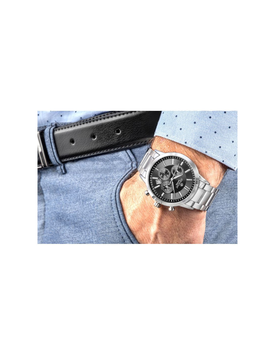 Mocna bransoleta wykonana z perfekcyjnie stali szlachetnej to element, który nie sposób przeoczyć. Każde ogniwo zostało zaprojektowane tak, by doskonale układać się na nadgarstku, zapewniając jednocześnie maksymalny komfort. Nieprzesadzona, doskonała w dotyku, wyrafinowana i solidna - jest jak stalowa obręcz, która mocno trzyma zegarek na Twoim nadgarstku, przypominając Ci o stabilności. Każde ogniwo jest starannie dopracowane, dzięki temu zegarek doskonale pasuje zarówno do codziennych, jak i formalnych stylizacji. Precyzyjnie wykonane zapięcie dopełnia ten mocny, męski charakter zegarka.