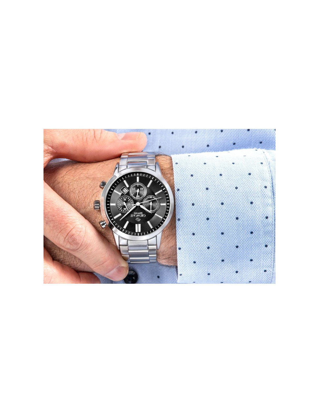 Zegarek Męski Giewont Chronograph Sapphire Srebrno Czarny GW8510-B1
