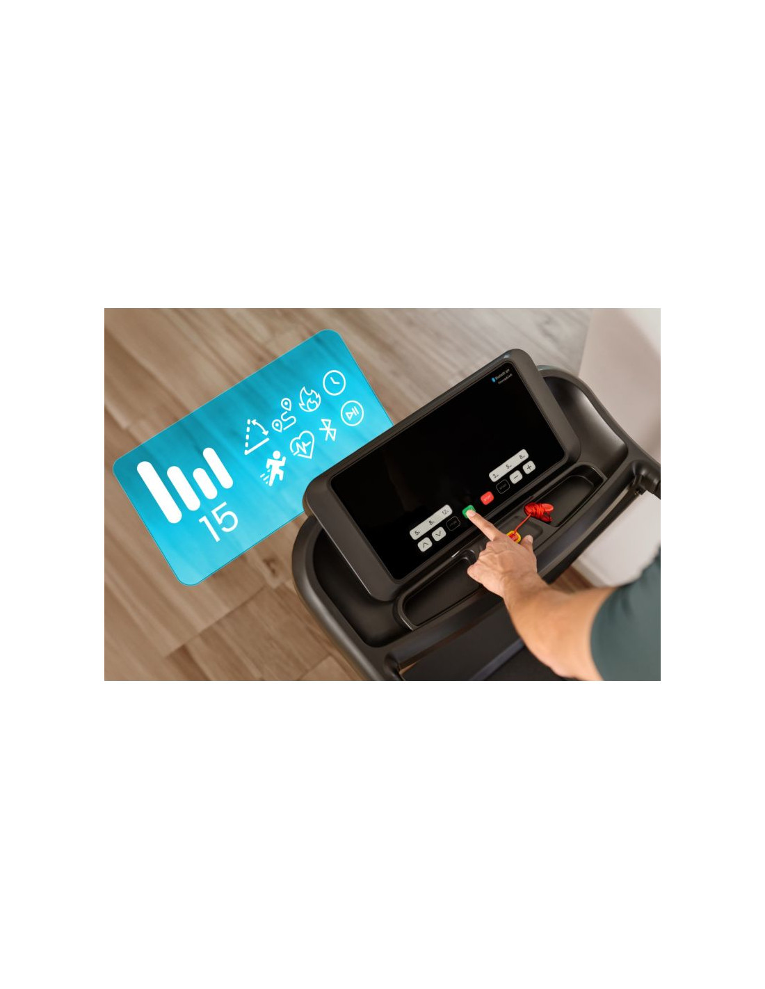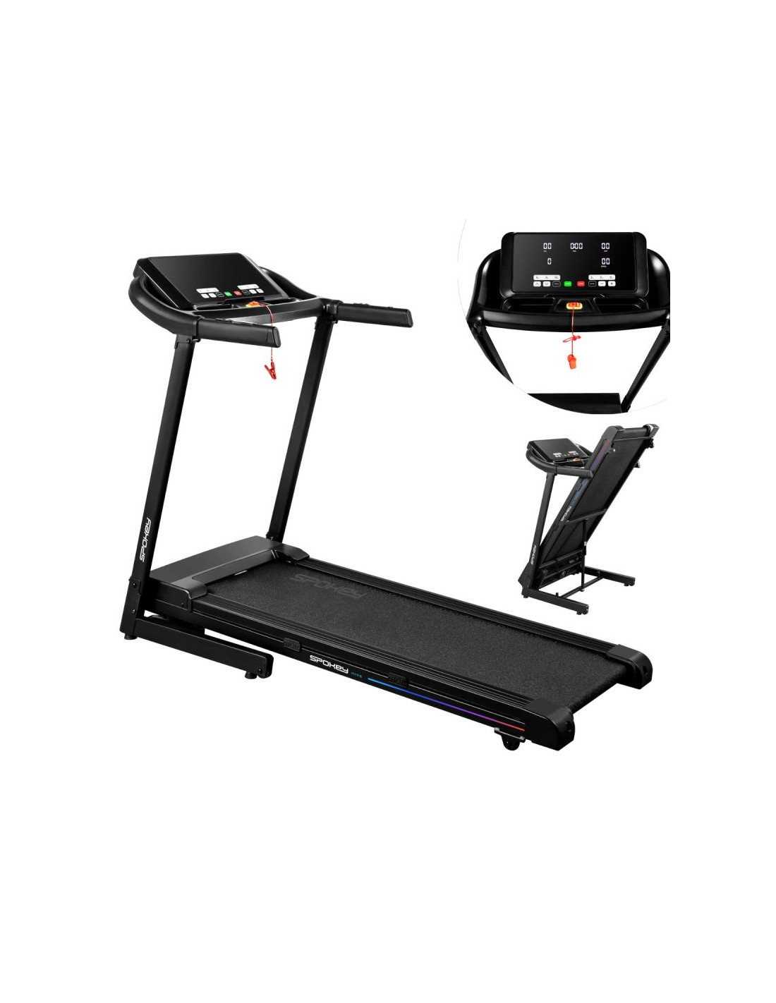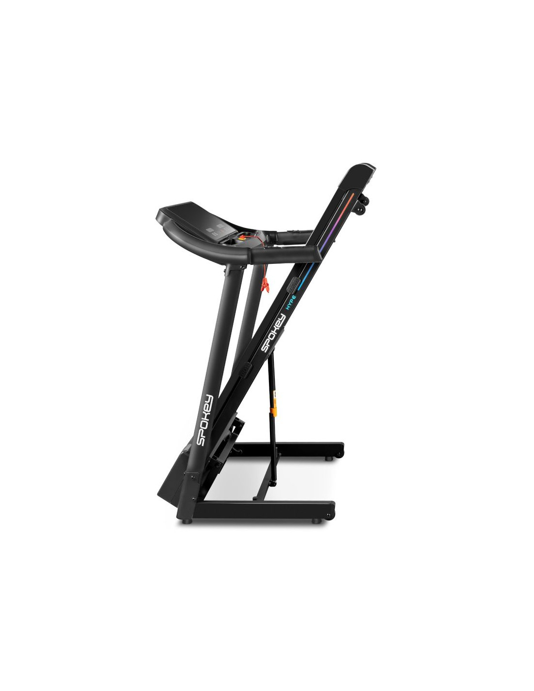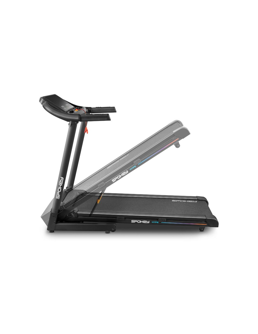 Bieżnia elektryczna Spokey HYPE – składana, z automatycznym nachyleniem i 15 programami treningowymi Składana bieżnia elektryczna Spokey HYPE z automatyczną regulacją nachylenia (1–15%), 15 programami treningowymi i możliwością personalizacji dla 3 użytkowników. Wyposażona w duży ekran LED, amortyzację, czujniki pulsu oraz praktyczne uchwyty na tablet i butelkę z wodą. Idealna do codziennych treningów w domu. Wprowadzenie Spokey HYPE to domowa bieżnia, która łączy wygodę użytkowania z szerokimi możliwościami treningowymi. Wyposażona w automatyczną regulację kąta nachylenia, 15 programów oraz możliwość personalizacji planów aż dla 3 użytkowników, pozwala dopasować trening do indywidualnych potrzeb. Dzięki składanej konstrukcji, amortyzacji i praktycznym uchwytom na tablet i bidon z wodą, bieganie w domu z bieżnia HYPE staje się naprawdę komfortowe i motywujące. Dlaczego warto wypróbować bieżnię elektryczną Spokey HYPE? 15 programów treningowychBogaty zestaw 15 gotowych programów treningowych pozwala na urozmaicenie ćwiczeń i dopasowanie intensywności do Twoich możliwości. Każdy z nich został podzielony na 20 sekcji, w których prędkość i nachylenia zmienia się automatycznie – to świetny sposób na symulację zróżnicowanych warunków i uniknięcie monotonii w trakcie biegu. 3 personalizowane programyBieżnia umożliwia stworzenie i zapisanie własnych planów treningowych dla 3 oddzielnych użytkowników. Dzięki temu każdy domownik może szybko wybrać swój tryb i trenować zgodnie z indywidualnymi potrzebami, bez konieczności ponownego ustawiania parametrów. Uchwyt na tablet i butelkęPodczas treningu wszystko, czego potrzebujesz, masz zawsze pod ręką – ulubiony napój w zasięgu dłoni i tablet lub smartfon, na którym możesz oglądać film, słuchać muzyki albo korzystać z aplikacji treningowych. To połączenie wygody i motywacji. AmortyzacjaSystem amortyzacji skutecznie pochłania wstrząsy powstające w czasie biegu, co odciąża stawy i zapewnia większy komfort. Dzięki temu każdy trening staje się przyjemniejszy i bardziej efektywny dla organizmu, nawet podczas dłuższych sesji. Szczegółowy opis Bieżnia elektryczna Spokey HYPE to Twój sposób na efektywny trening bez wychodzenia z domu. Mocny silnik 1,75 HP pozwala rozpędzić się do 14 km/h – idealnie zarówno do energicznych marszów, jak i intensywnego biegania. Szeroki pas biegowy (122 × 40 cm) daje pełną swobodę ruchu, a system amortyzacji sprawia, że każdy krok jest komfortowy i płynny. Trenuj kiedy chcesz i na własnych zasadach! Dzięki 15 programom treningowym możesz łatwo dopasować intensywność ćwiczeń, a personalizacja dla aż 3 osób sprawia, że każda z nich może korzystać z bieżni w wygodny sposób. Duży ekran LED na bieżąco wyświetla najważniejsze dane, a czujniki pulsu wbudowane w poręcze umożliwiają monitorowanie tętna. Bieżnia HYPE została zaprojektowana z myślą o oszczędności miejsca – można ją złożyć i przechowywać w pozycji pionowej, a kółka transportowe ułatwiają jej przemieszczanie. Praktyczne detale, takie jak uchwyt na tablet i butelkę, podnoszą komfort korzystania z bieżni, a klucz bezpieczeństwa zapewnia dodatkową ochronę podczas treningu. Dane techniczne Typ: bieżnia elektryczna Moc silnika: 1,75 HP Maksymalna prędkość: 14 km/h Nachylenie: automatyczne: 1–15% Wyświetlacz: LED Funkcje wyświetlacza: czas, dystans, prędkość, puls, kalorie Programy treningowe: 15 + 3 personalizowane Pomiar pulsu: tak Pas biegowy: 122 × 40 cm Wymiary: 143 × 67 × 111 cm Wymiary po złożeniu: 64 × 67 × 135 cm Waga urządzenia: 47 kg Maksymalna waga użytkownika: 110 kg Składanie: hydrauliczne Uchwyt na tablet i butelkę: tak Kółka transportowe: tak Bluetooth: tak Certyfikaty, normy i ostrzeżenia Zgodność z normami bezpieczeństwa UE. Produkt przeznaczony wyłącznie do użytku domowego. Urządzenie nie jest przeznaczone dla dzieci. Użytkowanie i pielęgnacja Przed pierwszym użyciem upewnij się, że bieżnia stoi na stabilnym i równym podłożu. Zaleca się umieszczenie sprzętu na macie amortyzującej, aby zmniejszyć poziom hałasu oraz drgania. Po każdym treningu wyłącz urządzenie przyciskiem, a następnie odłącz je od zasilania. Regularnie czyść pas biegowy i obudowę miękką, wilgotną szmatką. Unikaj stosowania agresywnych detergentów. Nie przechowuj sprzętu w wilgotnych ani mocno nasłonecznionych pomieszczeniach. Bieżnia jest przeznaczona wyłącznie do użytku domowego – nie należy korzystać z niej w warunkach komercyjnych ani udostępniać dzieciom. Najczęściej zadawane pytaniaCzy bieżnia Spokey HYPE nadaje się do intensywnych treningów?Tak, dzięki silnikowi o mocy 1,75 HP i prędkości do 14 km/h, HYPE sprawdzi się zarówno do marszów, jak i regularnych treningów biegowych. Czy można złożyć bieżnię Spokey HYPE?Tak, dzięki systemowi hydraulicznemu można ją złożyć i przechowywać w pionie. Kółka transportowe ułatwiają przemieszczanie. Czy bieżnia ma amortyzację?Tak, cztery punkty amortyzacji zmniejszają obciążenie stawów, poprawiając komfort biegu. Czy b