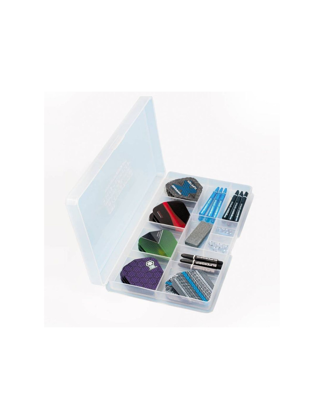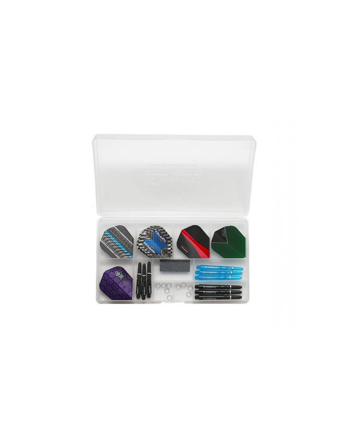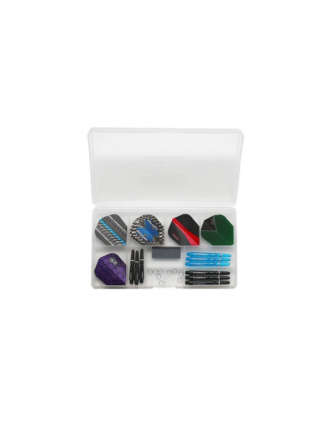 Profesjonalny zestaw akcesoriów do rzutek. Wszystkie elementy z najnowszych kolekcji. Całość w poręcznym pudełku.