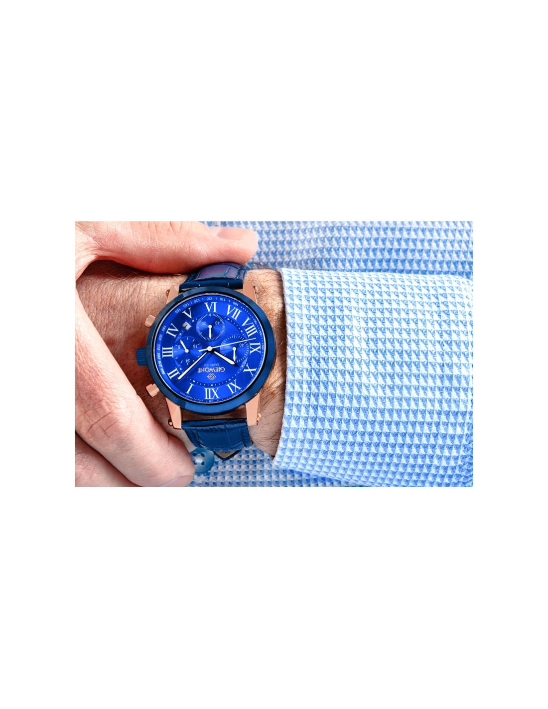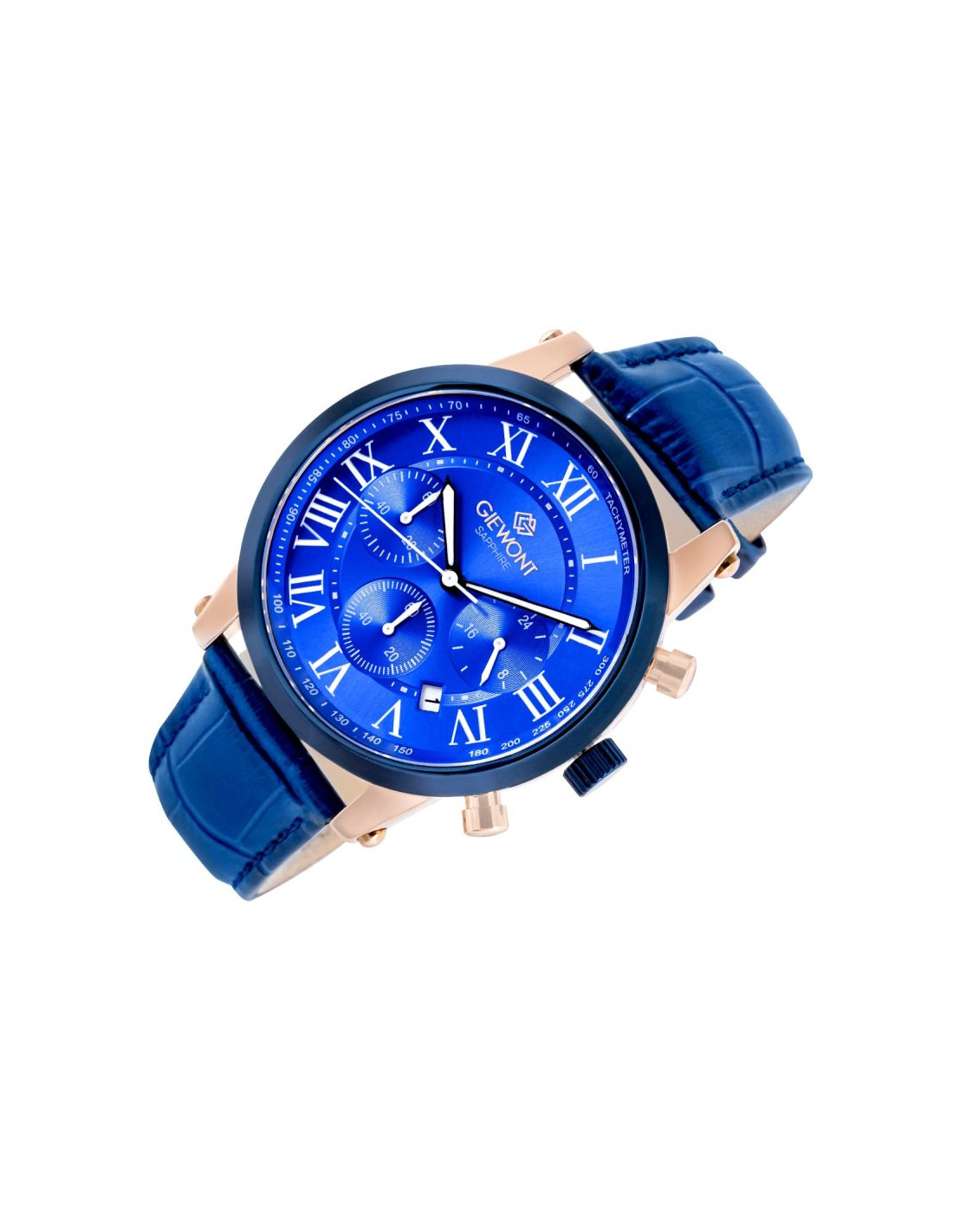 Zegarek męski Giewont GW6260-A5 to model stworzony dla mężczyzny, który ceni ponadczasową elegancję, dopracowaną formę i klasyczny styl, niepodlegający chwilowym trendom. Niebieska tarcza z wyraźnymi rzymskimi indeksami oraz harmonijnym układem subtarcz chronografu nadaje całości szlachetnego, wyważonego charakteru, który doskonale wpisuje się w estetykę klasycznego zegarmistrzostwa. Każdy detal zaprojektowano z myślą o czytelności i estetycznej spójności, dzięki czemu zegarek prezentuje się niezwykle elegancko i profesjonalnie.