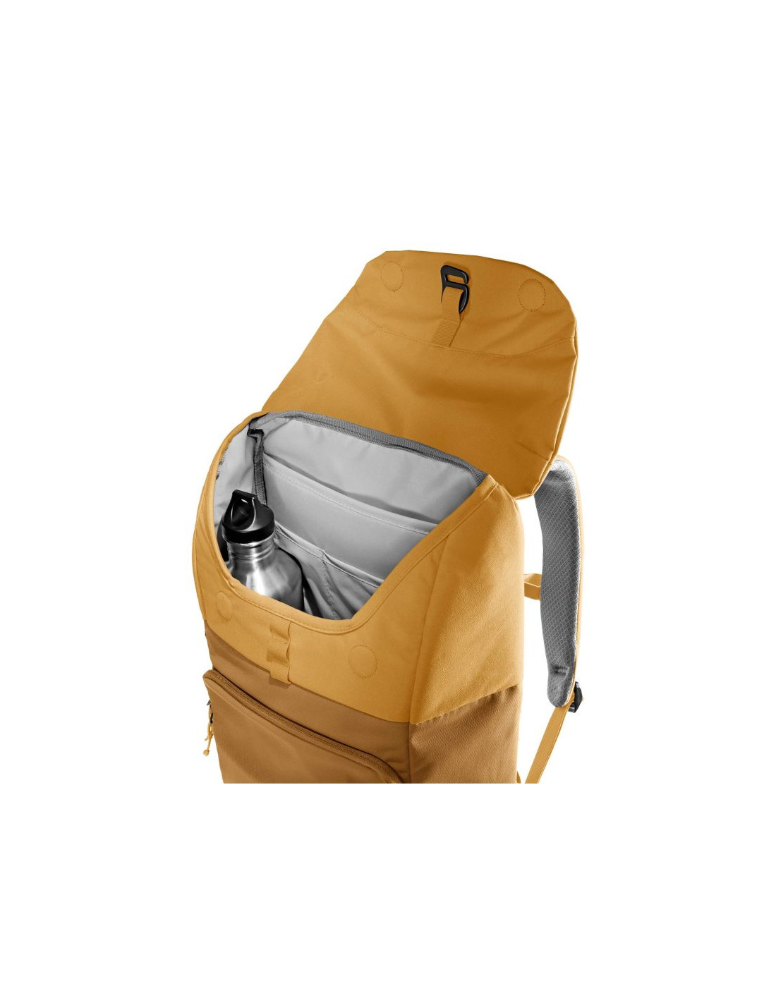 Deuter UP Sydney Almond Cinnamon to funkcjonalny plecak o pojemności 18 litrów, stworzony w 100% z przetworzonych butelek PET (około 30 sztuk). Został zaprojektowany z myślą o komforcie użytkownika, posiada usztywniany tylny panel oraz regulowane, ergonomiczne szelki. Komora główna pomieści dokumenty formatu A4, tablet oraz inne niezbędne akcesoria. Plecak wyposażono w oddzielną kieszeń na laptopa do 14 cali, organizer na drobiazgi oraz boczne kieszenie na butelkę z wodą. Kolor Almond Cinnamon nadaje mu ciepły, naturalny wygląd, który doskonale sprawdzi się w miejskim stylu życia.