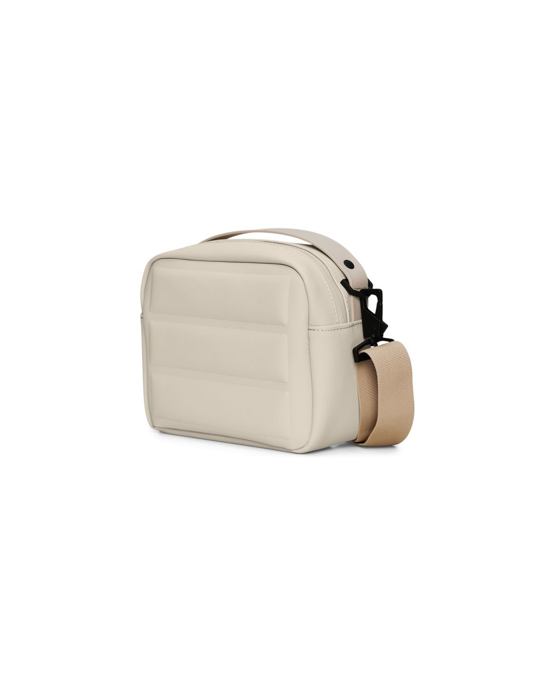 Torba Shield Box Bag to interpretacja kultowej torby Rains' Box Bag, z panelami z przodu i z tyłu, które dają iluzję puchówki. Projekt wykończony jest wytrzymałym górnym uchwytem i regulowanym paskiem, mocowanym za pomocą karabińczyków.