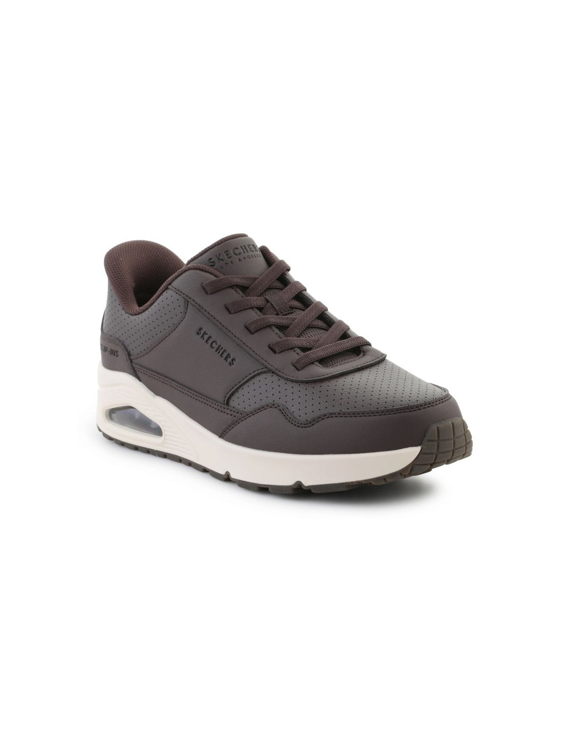 Model Skechers UNO Banksia Luxe 183023-CHOC Chocolate to idealne połączenie elegancji i sportowego stylu. Wykonane z wysokiej jakości syntetycznej skóry w odcieniu czekoladowego brązu, wyróżniają się wyrafinowanym wykończeniem oraz nowoczesnym wyglądem. Dzięki wbudowanej poduszce powietrznej w podeszwie środkowej zapewniają wyjątkową amortyzację przy każdym kroku.