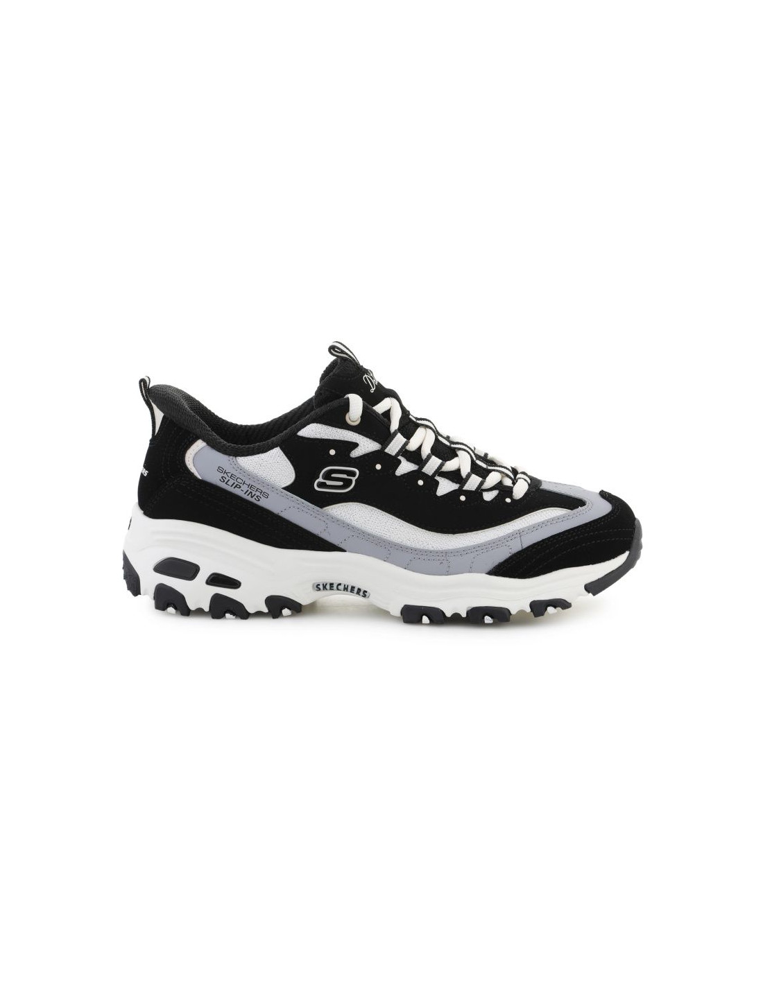 Skechers Slip-ins Sport D’lites to nowoczesne buty lifestyle zaprojektowane z myślą o maksymalnej wygodzie i szybkim zakładaniu bez użycia rąk. Technologia Slip-ins umożliwia łatwe wsunięcie stopy, zapewniając jednocześnie stabilne trzymanie pięty. Cholewka wykonana z połączenia materiałów tekstylnych i syntetycznych gwarantuje trwałość, dobre dopasowanie oraz sportowy wygląd.