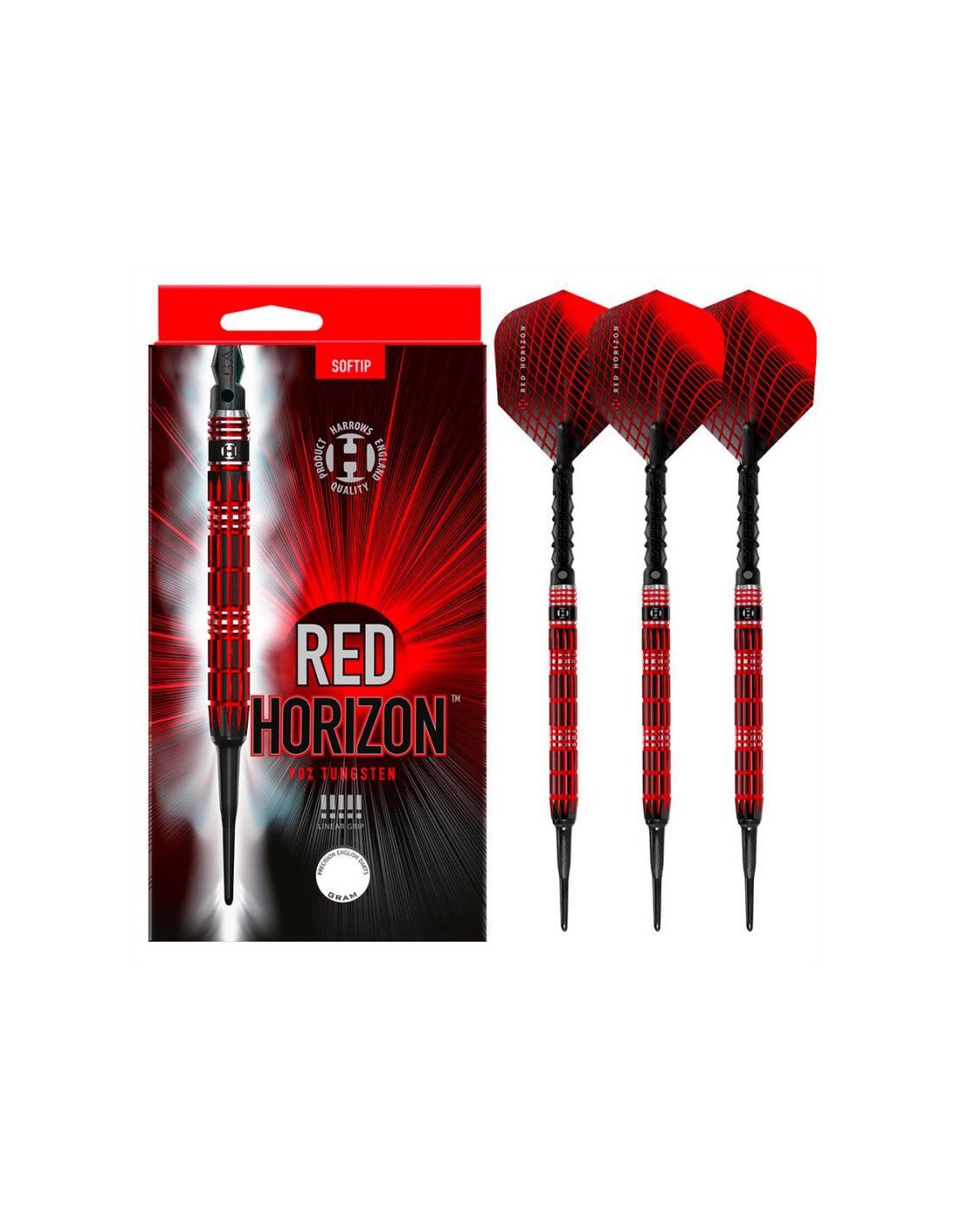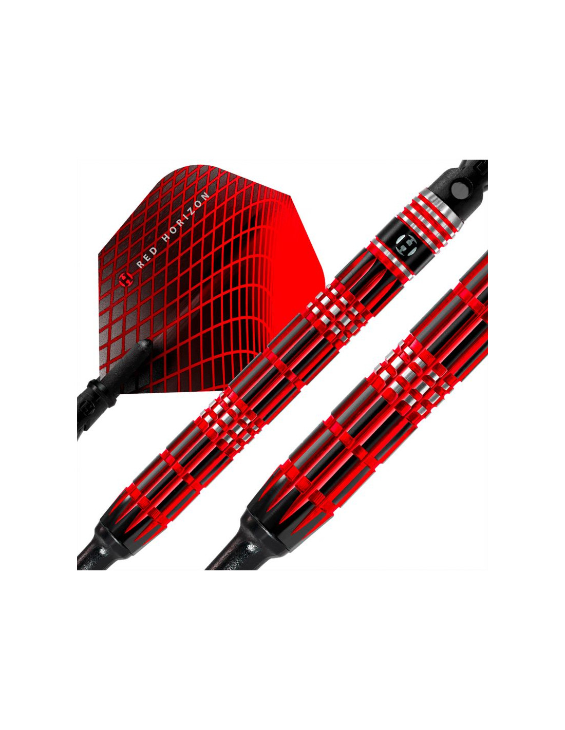 Rzutki Red Horizon są dostarczane z shaftami midi Black Carbon ST, nowymi lotkami Red Horizon o grubości 100 mikronów i są wyważone z dokładnością do +/- 0,05 g.