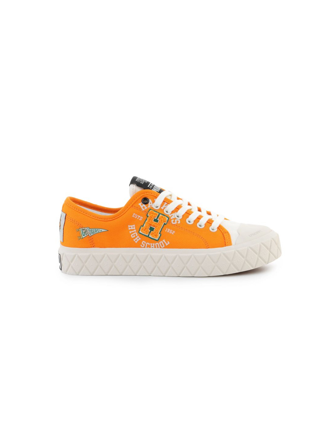 Model Palla Ace Tigers Fire Orange łączy klasyczną konstrukcję canvasowych sneakersów z wyrazistym nadrukiem Tigers i intensywnym kolorem Fire Orange, inspirowanym popkulturą. Płócienna cholewka jest lekka, przewiewna i komfortowo dopasowuje się do stopy, zapewniając wygodę przez cały dzień. Wkładka wewnętrzna amortyzuje każdy krok i zwiększa komfort codziennego użytkowania.