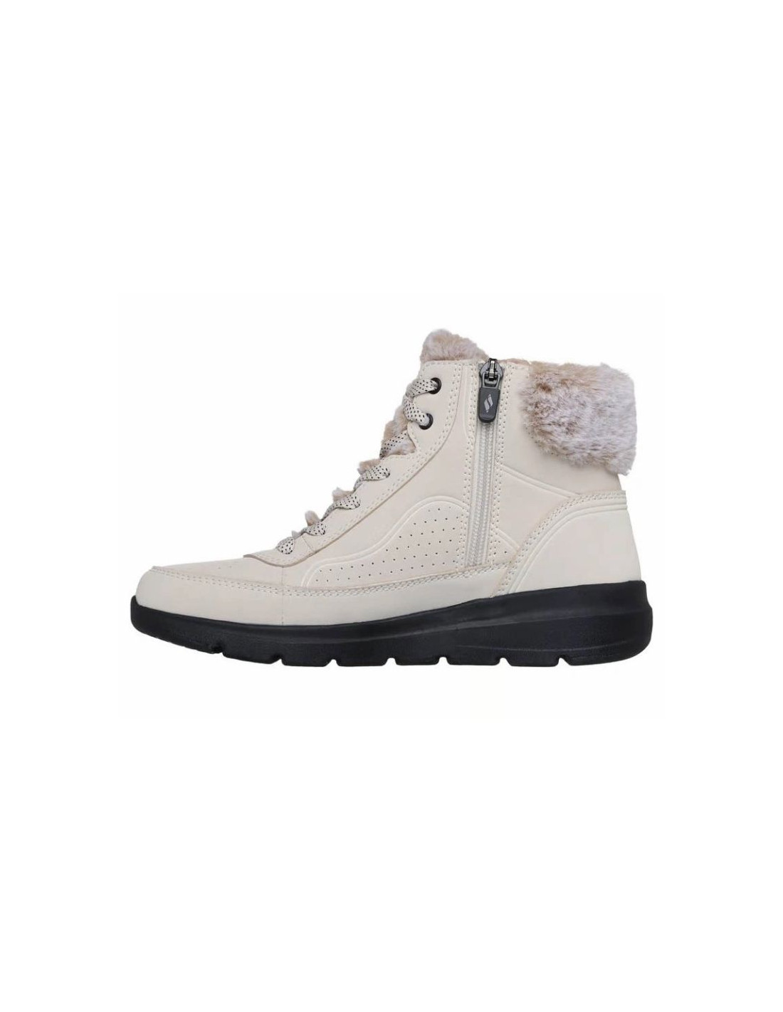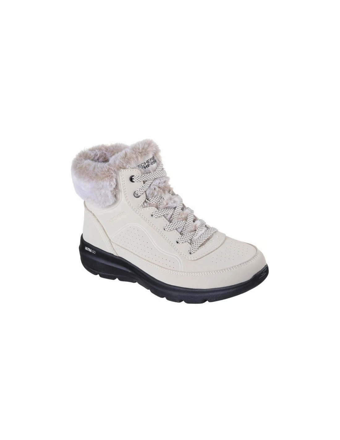 Model Skechers Glacial Ultra - Mountain Muse to damskie zimowe botki łączące wygodę i funkcjonalność z nowoczesnym, casualowym designem. Cholewka wykonana z syntetycznych materiałów została zabezpieczona powłoką odporną na wodę i zabrudzenia, co wspiera ochronę stóp w chłodniejszych i wilgotnych warunkach. Botki posiadają wysoką konstrukcję z ocieplanym wykończeniem oraz miękkim futerkiem wewnątrz, które zapewnia komfort termiczny nawet w niskich temperaturach.