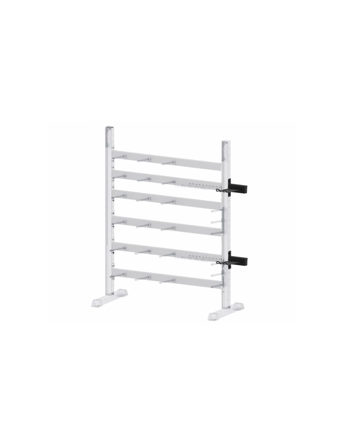 Dodatkowy uchwyt do modułowego stojaka na sztangi 22/24. Dzięki temu dedykowanemu rozwiązaniu, można przechowywać na stojaku modułowym na sztangi dodatkowe 6 gryfów.