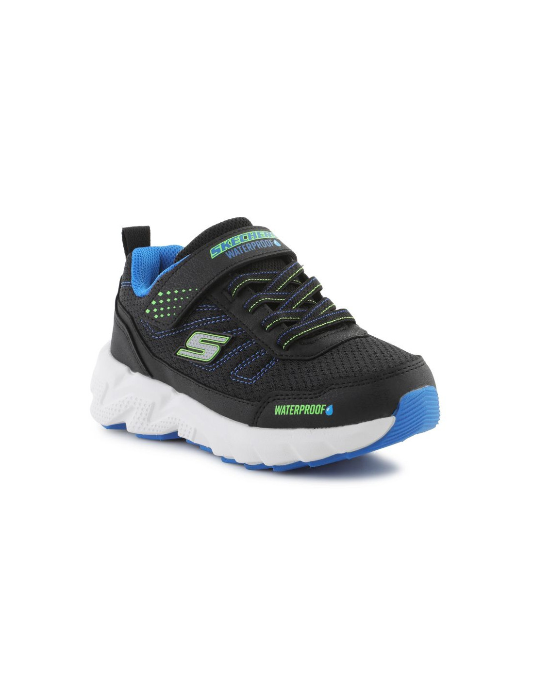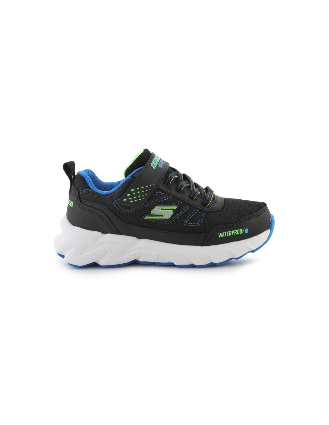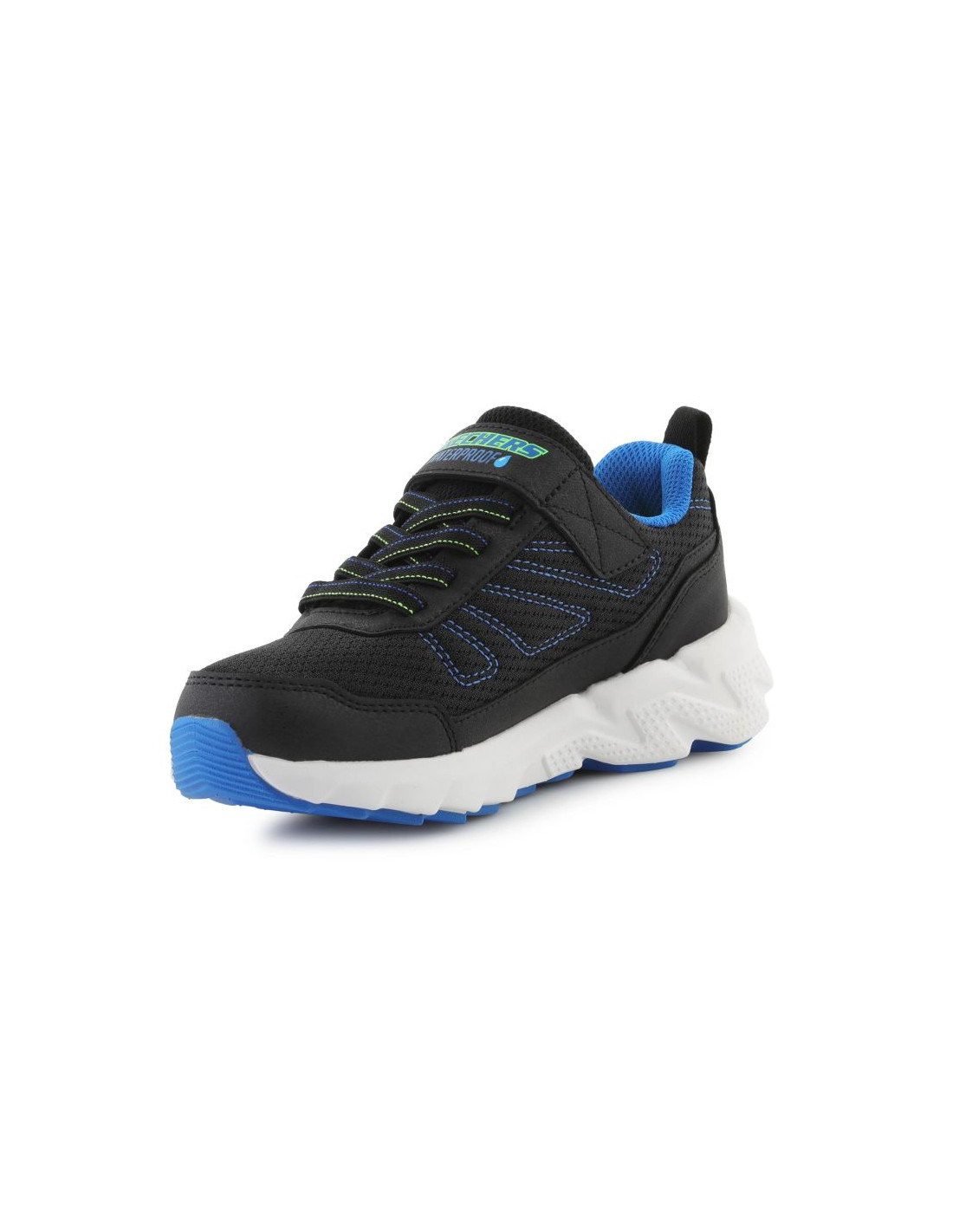 Sneakersy Skechers Elite Sport Tread – Aquavek (model 406334L-BKBL) to wytrzymałe i nowoczesne obuwie dla dzieci przygotowane na każdą aktywność. Wodoodporna konstrukcja z uszczelnionymi szwami chroni przed wilgocią, a cholewka z oddychającej siateczki i syntetycznych materiałów zapewnia komfort i trwałość. Elastyczne sznurówki w połączeniu z systemem intuitive adaptive (łatwe zakładanie i zdejmowanie) gwarantują pewne dopasowanie. Wkładka amortyzująca dba o komfort stóp, a miękka, wstrząso-tłumiąca podeszwa środkowa absorbuje uderzenia. Gumowa podeszwa zewnętrzna zapewnia dobrą przyczepność i stabilność — doskonała na różne nawierzchnie. Buty są lekkie i praktyczne, idealne na codzienne aktywne dni.