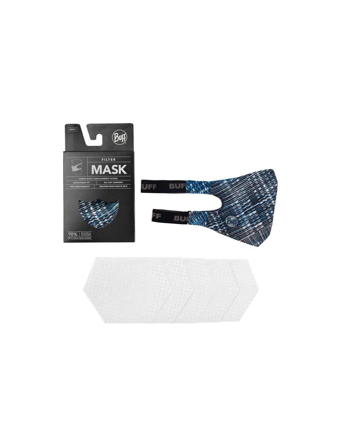 Każda maska filtrująca BUFF® sprzedawana jest w zestawie z pięcioma filtrami zamiennymi.