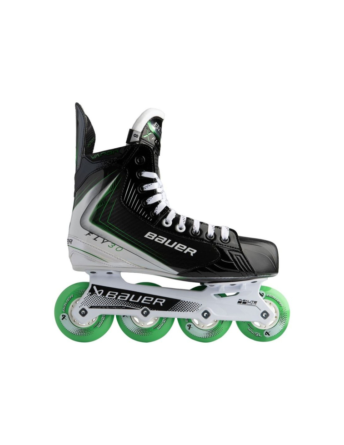 Rolki hokejowe Bauer Vapor Fly30 Senior Dynamika i kontrola w grze inline Rolki hokejowe Bauer Vapor Fly30 Senior zostały stworzone dla graczy, którzy oczekują dynamicznej jazdy. Potrzebują szybkiej reakcji oraz wysokiej stabilności podczas gry w inline hokeja. Konstrukcja inspirowana linią Vapor zapewnia sportowe dopasowanie oraz bezpośrednie przenoszenie energii. Dzięki czemu każdy krok jest bardziej efektywny i płynny. Lekka konstrukcja DIGI COMP zapewnia idealną równowagę między elastycznością a wsparciem, co przekłada się na szybsze przyspieszenia i lepszą kontrolę w zakrętach. Szyna FLEXLITE inspirowana holderem POWERFLY zwiększa zwrotność, a konfiguracja kół Hi-Lo pozwala utrzymać naturalną, lekko pochyloną pozycję do przodu, która poprawia stabilność i kontrolę podczas jazdy. Główne cechy: Rolki do inline hokeja: Przeznaczone dla graczy rekreacyjnych i amatorskich. Konstrukcja DIGI COMP: Lekka budowa zapewniająca dobrą dynamikę jazdy i wsparcie stopy. Podwozie FLEXLITE: Zwiększa zwrotność oraz kontrolę podczas szybkich manewrów. Konfiguracja kół Hi-Lo: Ułatwia przyspieszenie i pomaga utrzymać naturalną pozycję podczas jazdy. Kółka Bauer Street: Zapewniają dobrą przyczepność na twardych nawierzchniach. Komfortowe wnętrze: Język Pro Stock oraz sublimowana wyściółka poprawiają wygodę użytkowania. Dopasowanie Vapor: Stabilna pięta i dobra kontrola rolki podczas gry. Rolki hokejowe Bauer Vapor Fly30 Senior to solidny wybór dla zawodników, którzy chcą rozwijać swoją grę inline, łącząc szybkość, zwrotność i komfort jazdy. ???? Specyfikacja techniczna – Rolki hokejowe Street Konstrukcja buta DIGI COMP Quarter – lekka i elastyczna konstrukcja, dzięki której każdy krok jest łatwiejszy i bardziej naturalny System sznurowania Standard Facing – tradycyjny system sznurowania zapewniający sprawdzoną wydajność i dopasowanie Język Pro Stock Tongue – profesjonalne odczucie i wysoki poziom komfortu Podeszwa DIGI COMP Outsole – elastyczna konstrukcja zapewniająca odpowiednią strukturę i wsparcie podczas dynamicznych ruchów Ochrona palców Standard Toe Cap – klasyczny wygląd i odczucie Płoza FLEXLITE Chassis – jednoczęściowa szyna inspirowana holderem POWERFLY, zapewniająca lepszą zwrotność podczas skrętów i przyspieszania Łożyska ABEC 5 – odpowiednie dla graczy rekreacyjnych i okazjonalnej jazdy Kółka BAUER Street Wheels – układ Hi-Lo zapewnia lekko pochyloną do przodu pozycję zwiększającą stabilność Rozmiar kółek 2 × 76 mm; 2 × 80 mm Wyściółka Sublimated Liner – komfortowa wyściółka z nadrukowanym wzorem