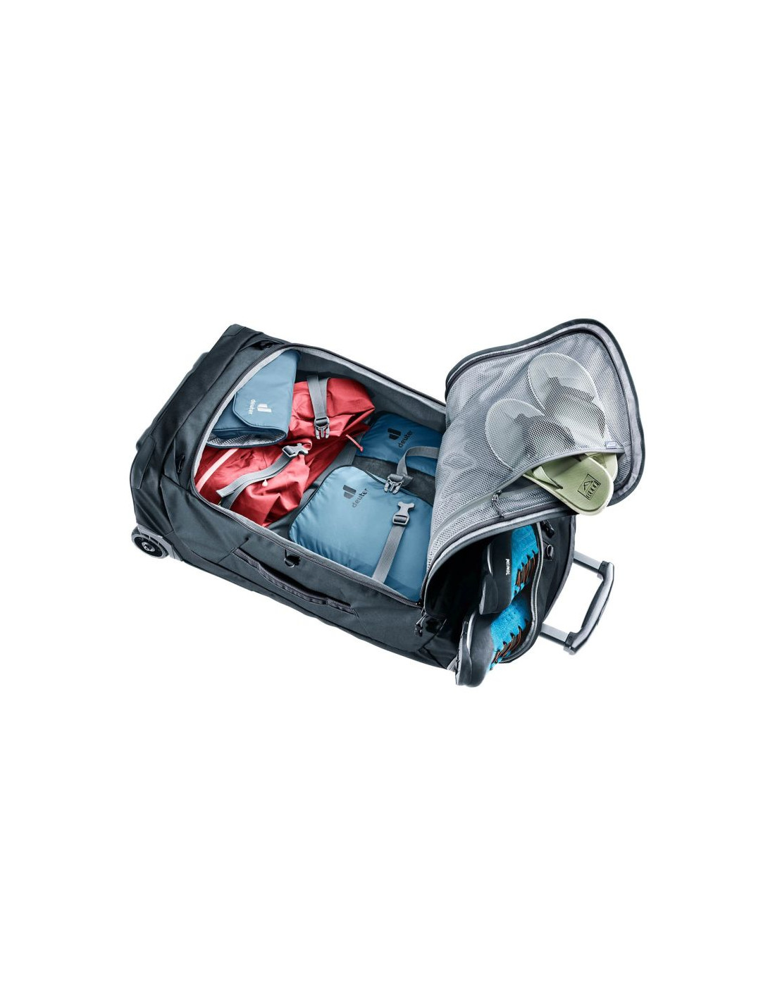 Przestronna główna komora z szerokim U-kształtnym zamkiem błyskawicznym zapewnia łatwy dostęp do zawartości i wygodne pakowanie. Wewnątrz znajdują się paski kompresyjne, które pomagają utrzymać rzeczy na miejscu podczas transportu, zapobiegając ich przemieszczaniu się. Dodatkowe kieszenie boczne zapinane na zamek oferują przydatne miejsce na drobne akcesoria lub przedmioty, które chcesz mieć łatwo dostępne.