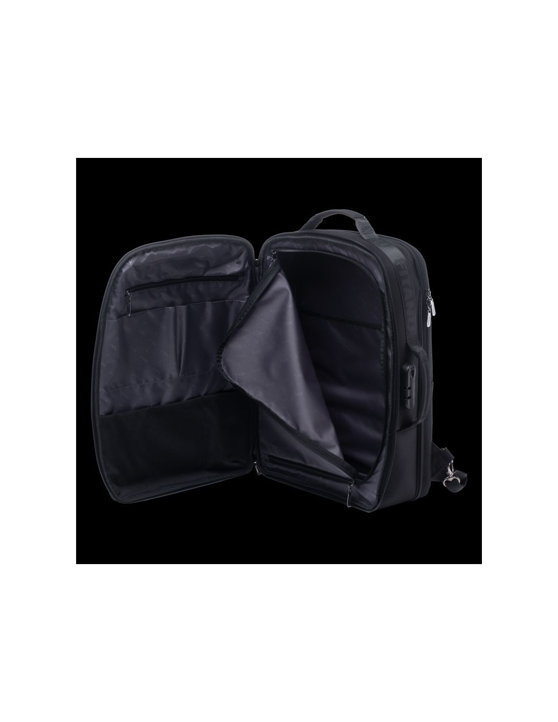 PLECAK 2 w 1 POJEMNOŚĆ: 35 l WYMIARY: 51 × 33 × 22 cm SKŁAD MATERIAŁOWY: MATERIAŁ 1: 100% POLIESTER MATERIAŁ 2: 100% POLIPROPYLEN SPECYFIKACJA: - ORGANIZER - KIESZEŃ NA LAPTOPA - ZAMEK SZYFROWANY KODEM - UCHWYT DO MOCOWANIA NA RĄCZKĘ WALIZKI - ZAMEK SBS - BAGAŻ PODRĘCZNY