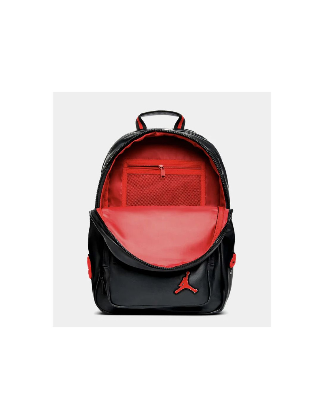 Wykonany z groszkowanej sztucznej skóry, w stylu inspirowanym kurtką uniwersytecką Jordana ozdobiony haftowanym logo, ten podwyższony plecak to doskonały sposób na noszenie codziennych rzeczy. Pojemna komora główna zapinana jest na zamek błyskawiczny, a w środku znajduje się siateczkowa kieszeń zapinana na zamek, która pomoże Ci zabezpieczyć drobiazgi. Tylna komora mieści wyściełaną przegrodę na laptopa lub tablet, a kieszenie zapinane na zamek z przodu zapewniają szybki i łatwy dostęp. Boczne kieszonki na butelkę.