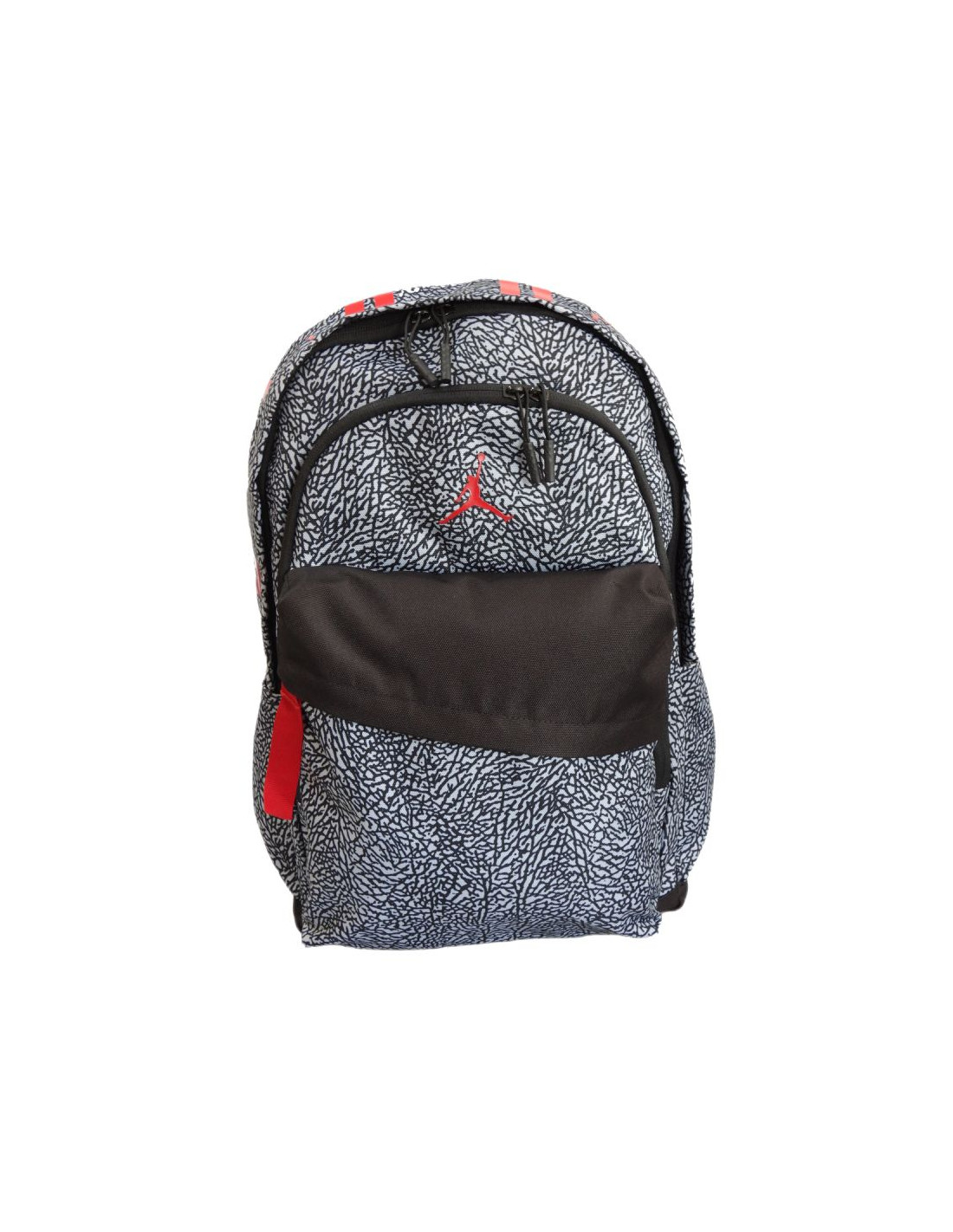 Produkt został zrobiony w klasycznej szarej kolorystyce z czarnym dodatkiem oraz czerwonymi elementami marki Jordan.