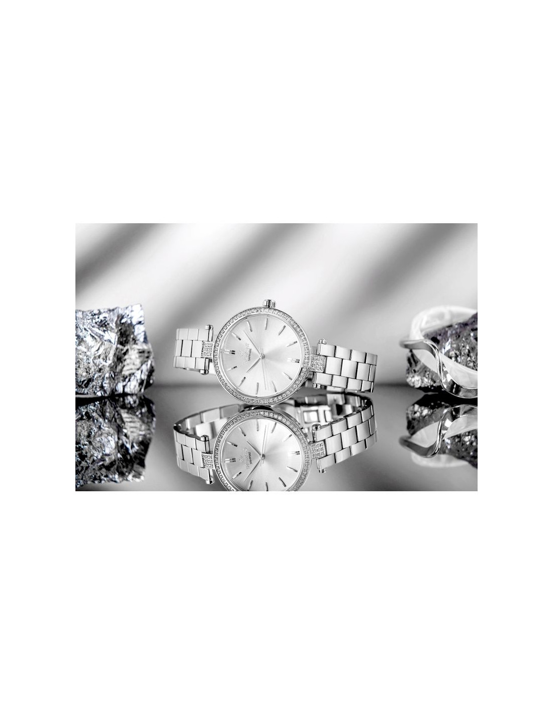 To czasomierz o wyraźnie luksusowym, biżuteryjnym charakterze — subtelny, dopracowany i pełen klasy. Elegancja została tu zamknięta w detalach, tworząc dodatek, który dyskretnie podkreśla styl i pozostaje aktualny niezależnie od okazji.