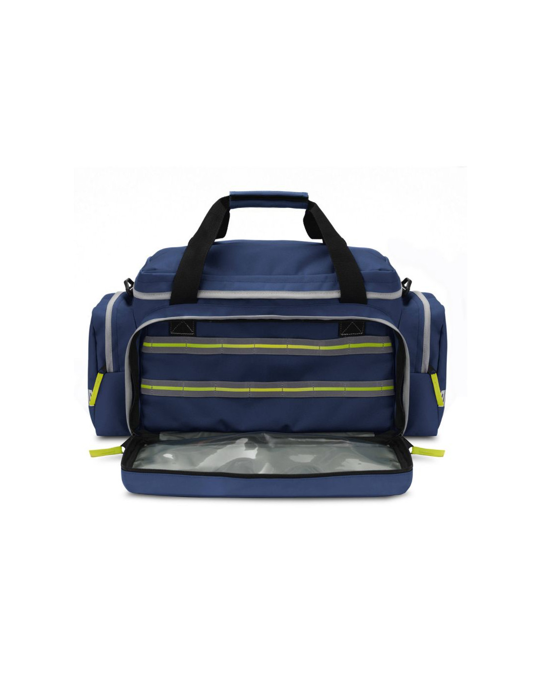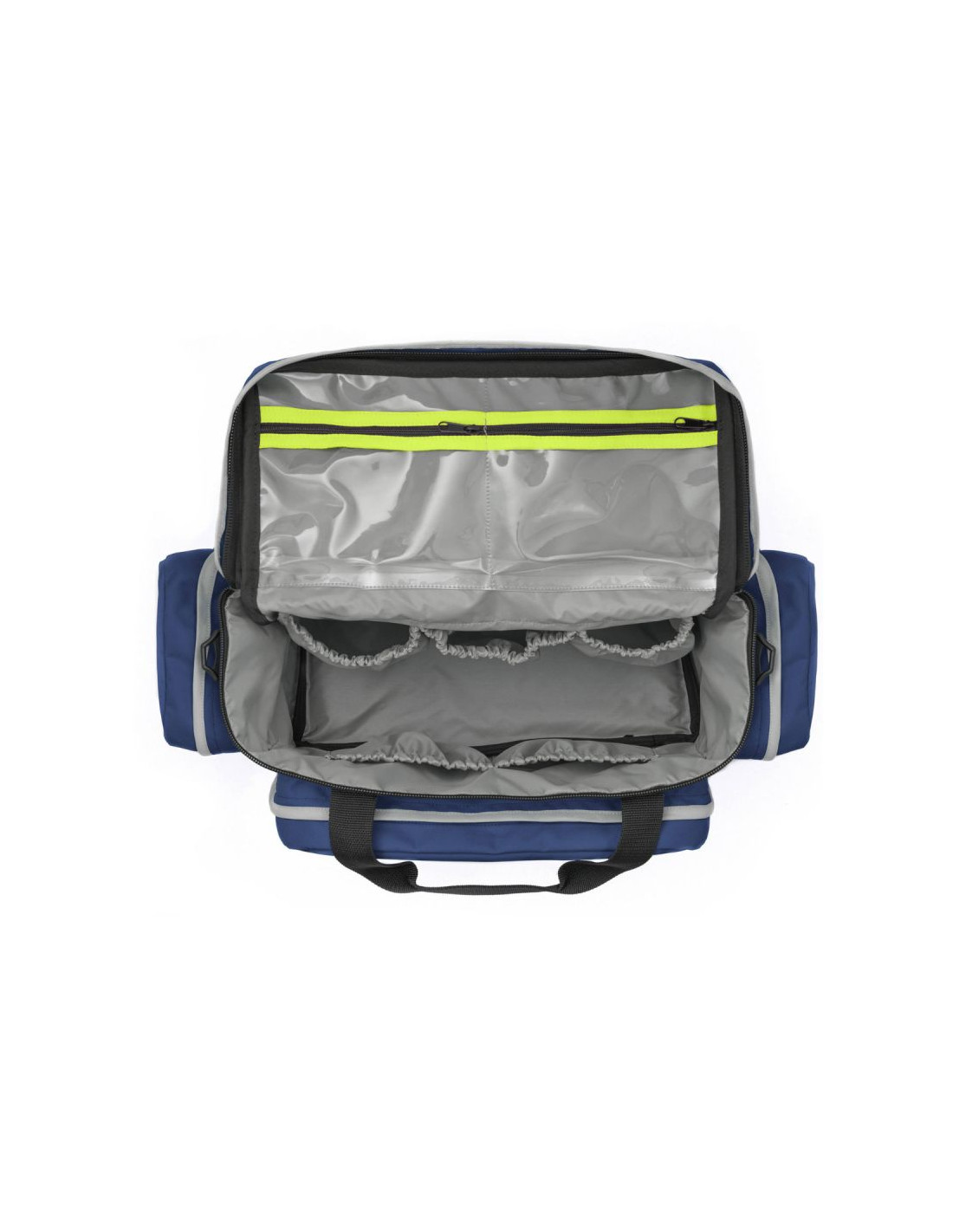 Torba medyczna wykonana jest z wytrzymałego, wodoodpornego poliestru 600/600, co zapewnia trwałość i odporność na wilgoć.
