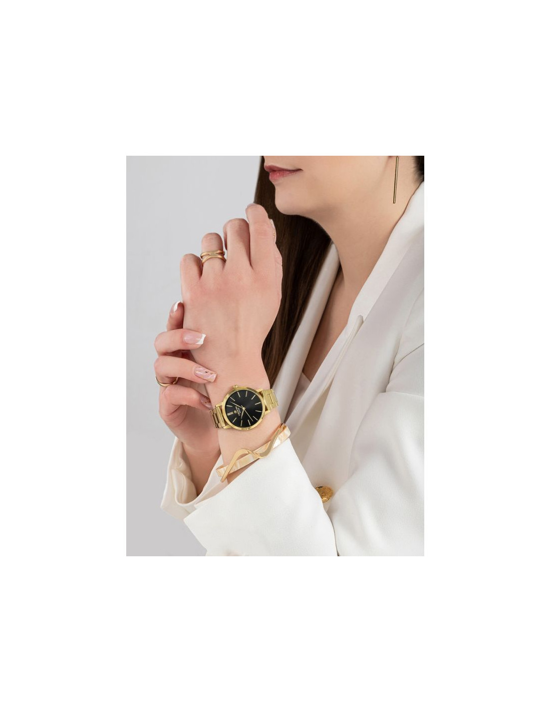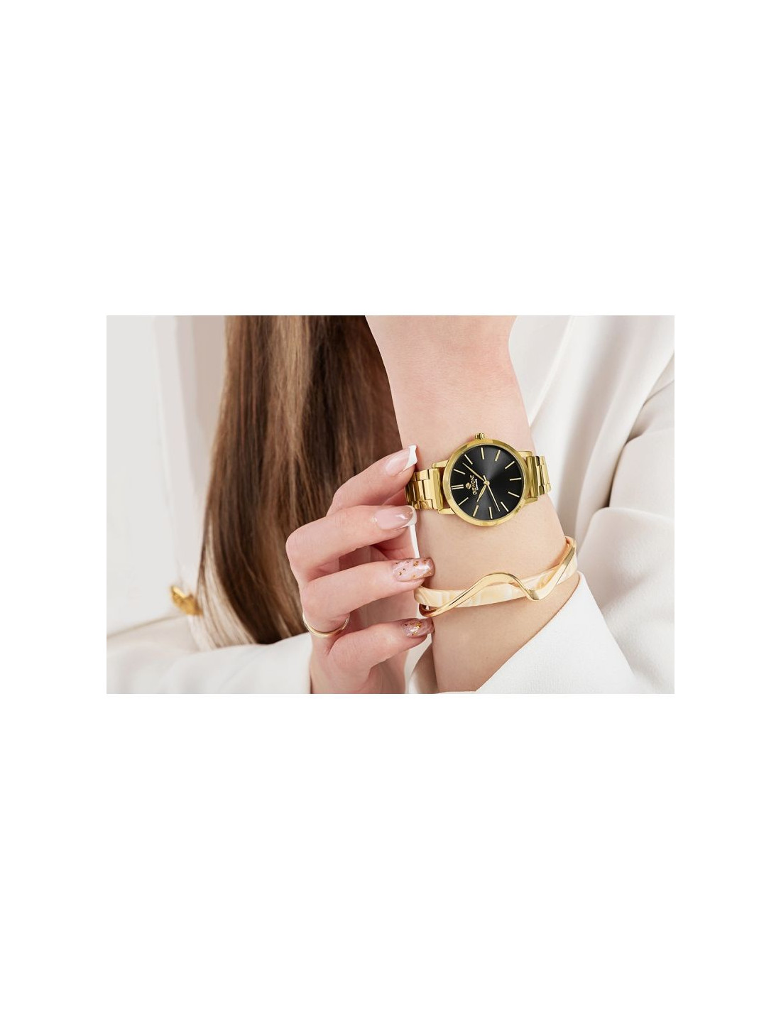 Mocna bransoleta wykonana z perfekcyjnie stali szlachetnej to element, który nie sposób przeoczyć. Każde ogniwo zostało zaprojektowane tak, by doskonale układać się na nadgarstku, zapewniając jednocześnie maksymalny komfort. Nieprzesadzona, doskonała w dotyku, wyrafinowana i solidna - jest jak stalowa obręcz, która mocno trzyma zegarek na Twoim nadgarstku, przypominając Ci o stabilności. Każde ogniwo jest starannie dopracowane, dzięki temu zegarek doskonale pasuje zarówno do codziennych, jak i formalnych stylizacji. Precyzyjnie wykonane zapięcie dopełnia ten mocny, kobiecy charakter zegarka.
