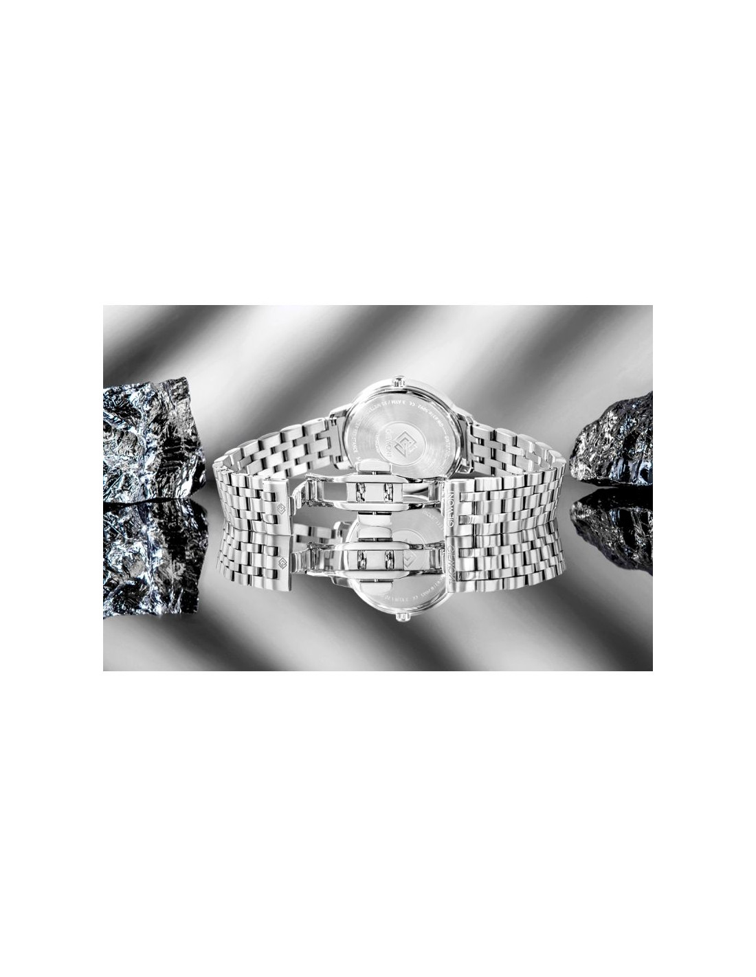 Bransoleta została wyposażona wzapięcie motylkowe, stosowane w zegarkach prestiżowych, klasy premium. To rozwiązanie nie tylko podkreśla luksusowy charakter modelu, ale także zapewnia niezwykłą wygodę i komfort noszenia.