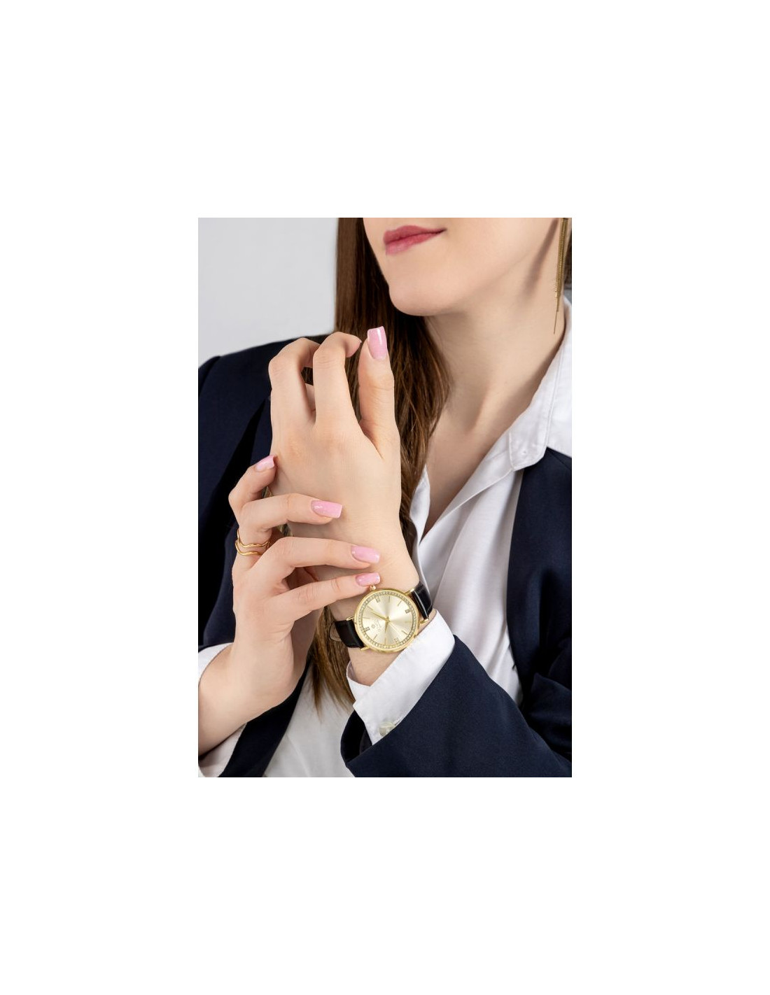 To czasomierz o wyraźnie biżuteryjnym charakterze — delikatny, elegancki i pełen wyczucia. Dyskretnie podkreśla styl, pozostając dodatkiem, który przyciąga uwagę spokojną formą i subtelnym blaskiem.