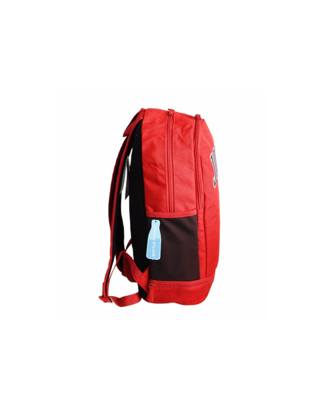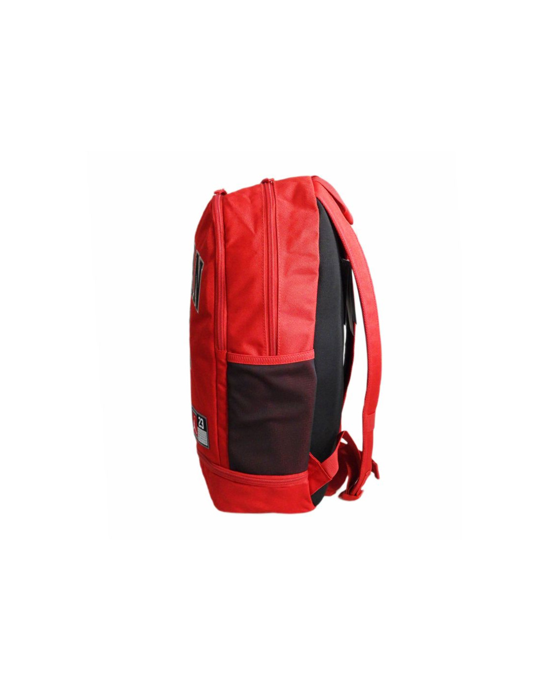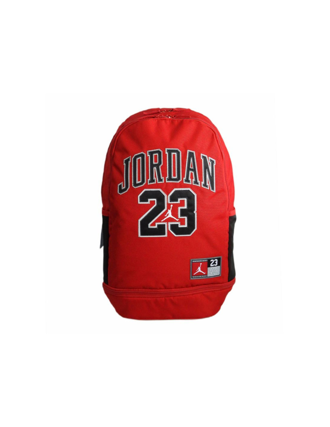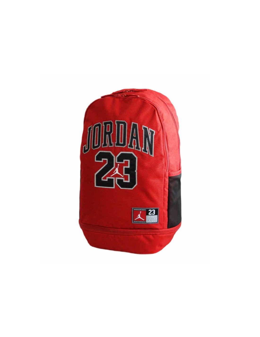 Plecak w kolorzeczerwono-czarnymz dużym napisem "Jordan 23" oraz niewielkim logotypem Jumpmana na froncie.