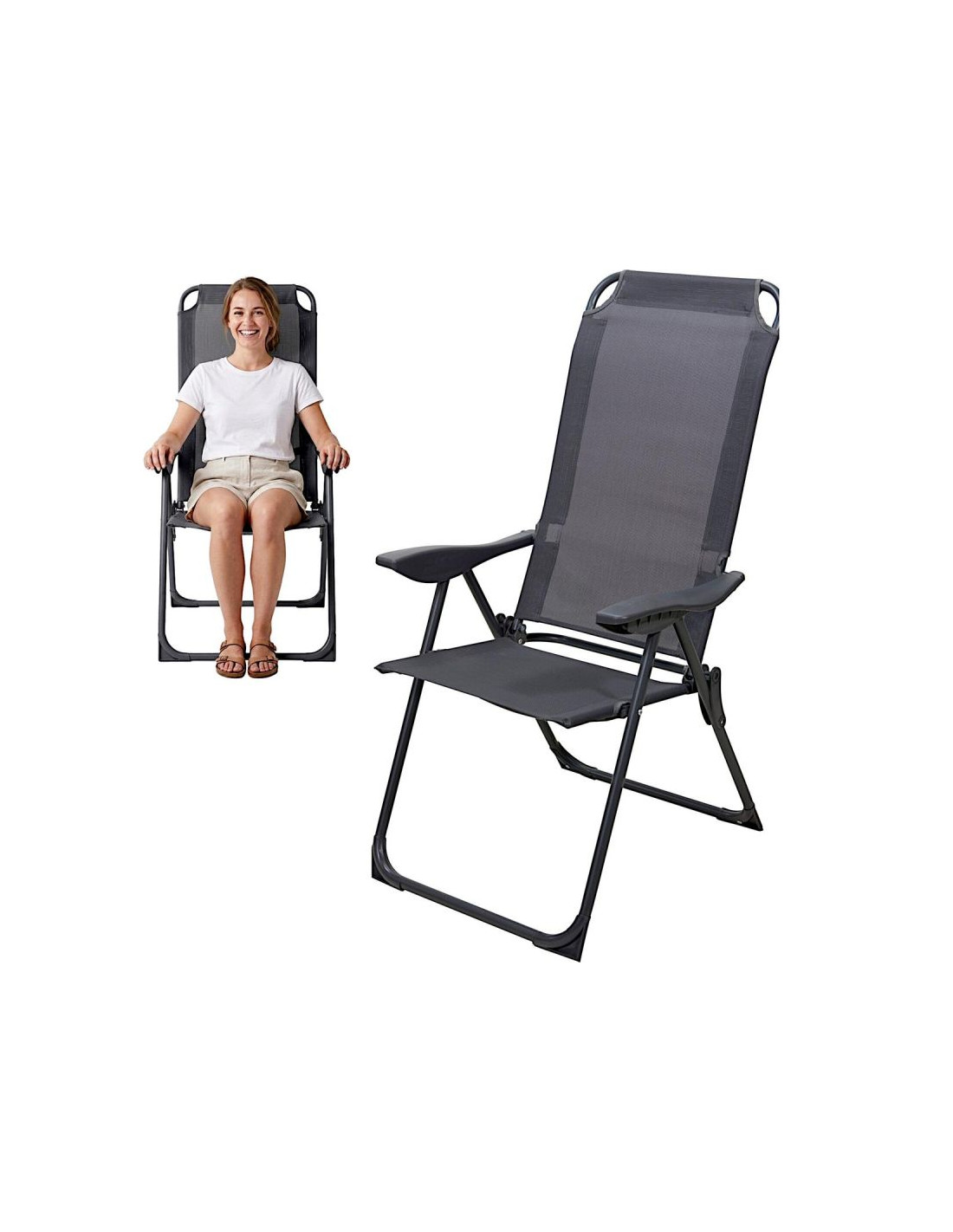 Krzesło fotel turystyczne z podłokietnikami składane grafit redcliffs
