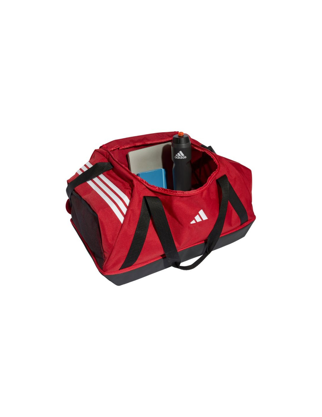 Torba adidas Tiro Duffle Large With Bottom Compartment czerwona JY7950 Sportowa torba adidas typu duffle z dodatkową przegrodą na dole. Wykonana z wytrzymałego płótna. Regulowany pasek i dwie rączki. Dolna przegroda idealna do przenoszenia butów lub wilgotnej odzieży bez kontaktu z resztą bagażu. Dane techniczne:· Materiał: 100% poliester z recyklingu· Wymiary: 69 x 36 cm· Pojemność: 74,73 l· Regulowany pasek z podkładką