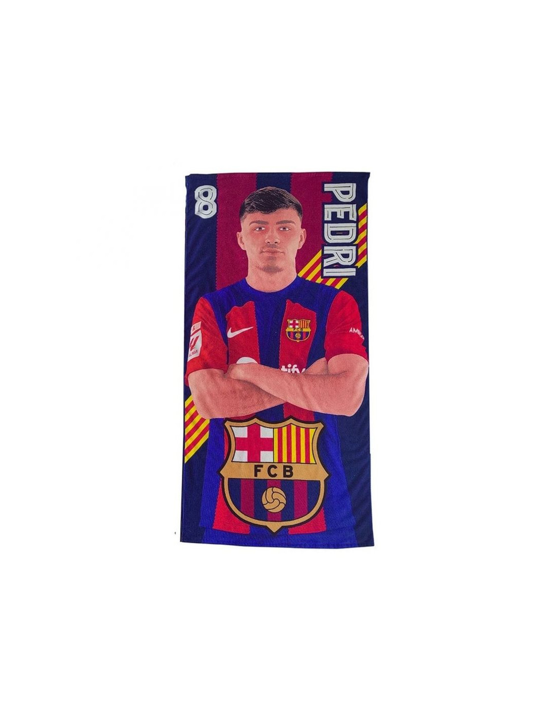FC BARCELONA RĘCZNIK PLAŻOWYMODEL: BEACH TOWEL PEDRI MICROFIBER 100X180 CMNUMER KATALOGOWY: 120010Oficjalny, licencjonowany produkt klubu piłkarskiego FC BARCELONA. Ręcznik dla prawdziwego kibica. Doskonale dobrana kolorystyka podkreśla jego niepowtarzalny design. Oferowany przez nas ręcznik wykonany jest bardzo starannie z wysokiej jakości materiału oraz z dbałością o szczegóły. Prezentowany produkt posiada komplet metek producenta.Materiał: 100% mikrofibraWymiary ręcznika: 70 x 140 cm