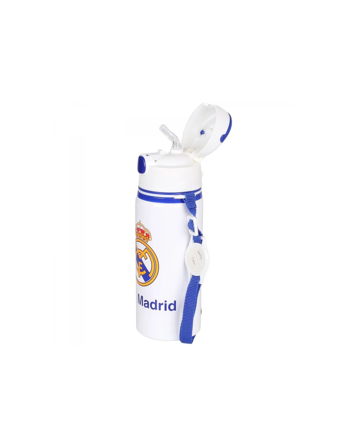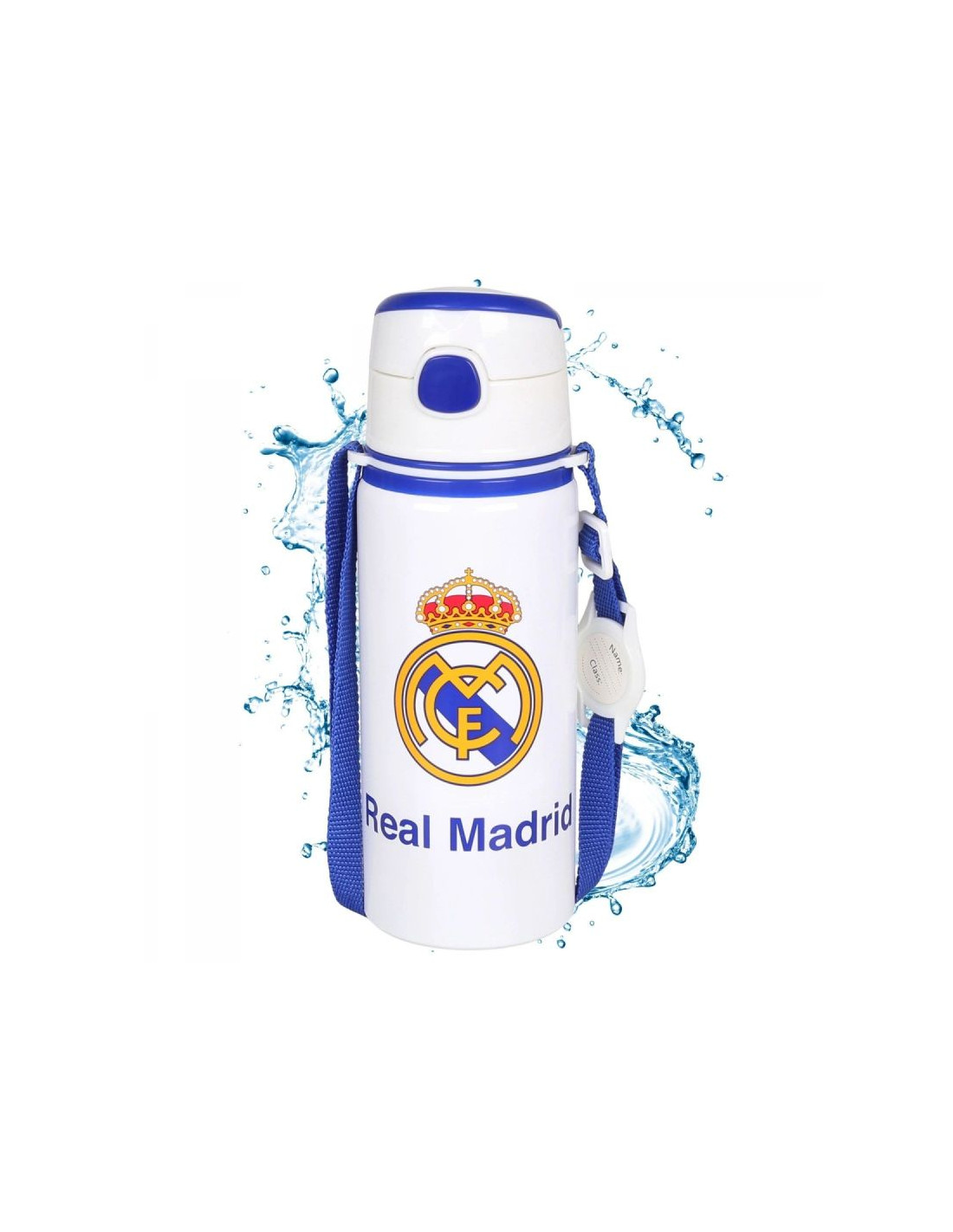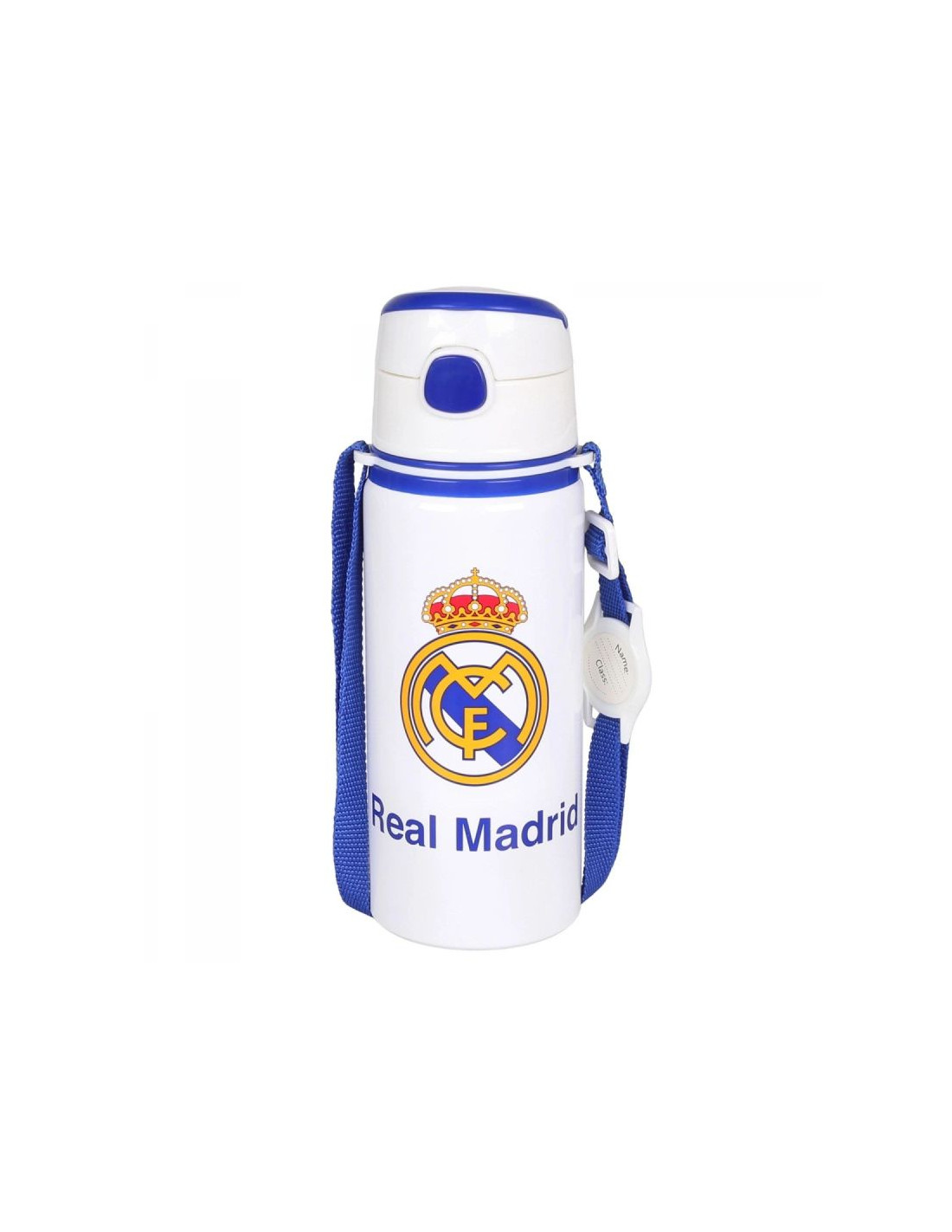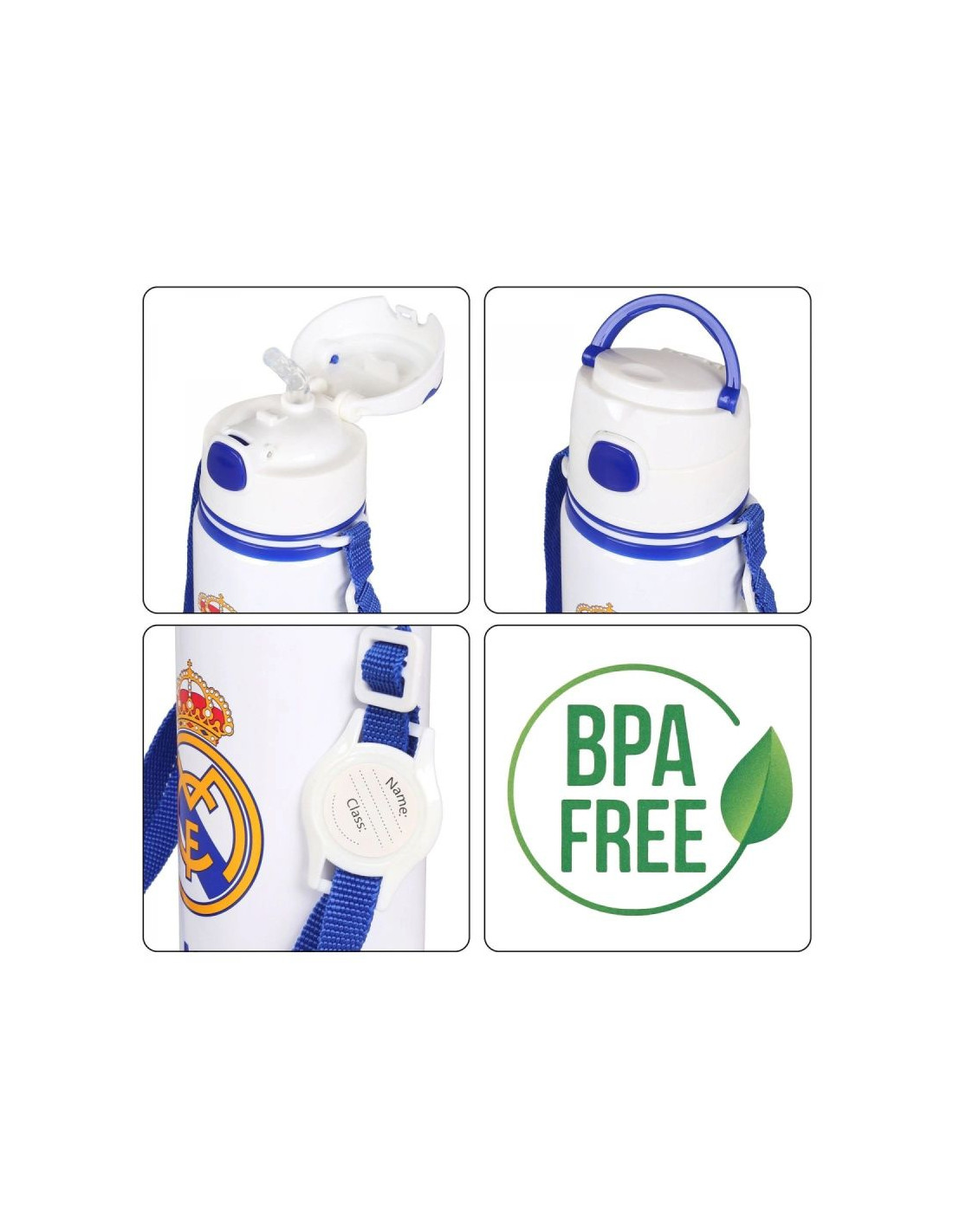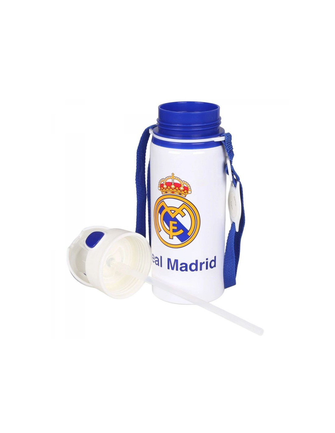 REAL MADRYT BIDON Z USTNIKIEMModel: ALUMINIUM WATER BOTTLE WITH STRAP 600 MLNumer katalogowy: RM00005Oficjalny, licencjonowany produkt klubu piłkarskiego Real Madryt. Bidon dla prawdziwego kibica. Dzięki niemu możemy wyrazić sympatię dla ulubionej drużyny piłkarskiej. Doskonale dobrana kolorystyka podkreśla jego niepowtarzalny design. Otwierany ustnik zabezpiecza przed rozlaniem. Wyposażony w uchwyt oraz pasek dla wygodnego noszenia bidonu. Oferowany przez nas bidon wykonany jest starannie z dbałością o szczegóły. Prezentowany produkt posiada komplet metek producenta oraz oryginalne opakowanie.Pojemność: 600 mlWysokość bidonu: 22 cmSzerokość bidonu: 7 cmMateriał wykonania: aluminium, BPA FREE - produkt wolny od Bisfenolu A.Zastosowanie: tylko do zimnych napojów.Nie nadaje się do mycia w zmywarce ani używania w mikrofali.