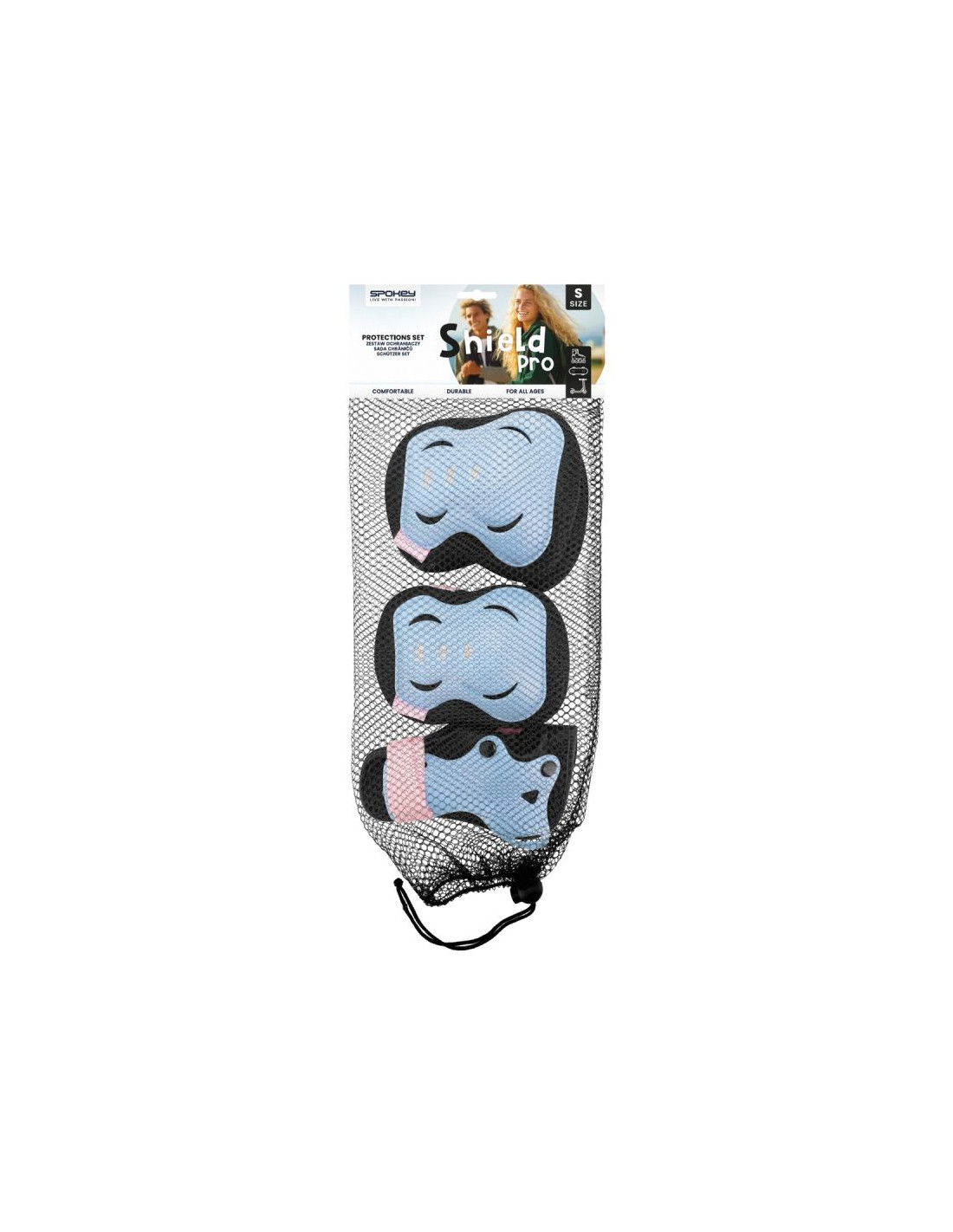 Zestaw ochraniaczy Spokey SHIELD: składa się z trzech podwójnych elementów, które doskonale chronią nadgarstki, łokcie i kolana przed otarciami i urazami, został stworzony dla dzieci i młodzieży - miłośników skatingowych emocji i wysokich prędkości oraz osób rozpoczynających swoją przygodę z jazdą na rolkach, wrotkach, łyżwach, hulajnodze czy deskorolce, jest wyposażony w elastyczne zapinanie na rzep oraz oddychającą siatkę, a także posiada anatomiczny kształt, co zapewnia maksymalną swobodę ruchów. Zestaw SHIELD doskonale zabezpiecza skaterów podczas jazdy na hulajnodze, rolkach, łyżwach i deskorolce. To świetne ochraniacze, które chronią nadgarstki, łokcie i kolana w trakcie zabawy pełnej wysokich prędkości i szybkich, skatingowych manewrów. Dzięki nim osoby początkujące nie muszą obawiać się o naturalnie występujące błędy, które często kończą się upadkami - Spokey SHIELD zminimalizują ryzyko otarć, urazów i kontuzji. Postaw na bezpieczny skating Jazda na hulajnodze, rolkach czy deskorolce to świetna zabawa i aktywność dla dzieci oraz młodzieży. Niestety bez odpowiedniej ochrony może zakończyć się zadrapaniami i otarciami. Zestaw ochraniaczy Spokey SHIELD został stworzony, aby im zapobiegać - zapewnia całościową ochronę dla młodych skaterów w postaci ochrony kolan, łokci i nadgarstków. Jest niezbędnym elementem podczas jazdy na rolkach, wrotkach, łyżwach czy deskorolce. Składa się z 3 podwójnych elementów wykonanych z lekkiego materiału, co zapewnia ich niską wagę i jednocześnie komfort podczas aktywności oraz maksymalną swobodę ruchów. Wyprofilowane ochraniacze zapinane elastycznymi paskami na rzep Skatingowi towarzyszą niezwykłe emocje, dlatego zawsze na pierwszym miejscu warto zadbać o bezpieczeństwo. Spokey SHIELD to ochraniacze, które są wyposażone w wygodne i jednocześnie trwałe zapinanie na rzep na elastycznych paskach, które można swobodnie regulować. Dzięki takiemu rozwiązaniu ochraniacze nie zsuwają się i zawsze pozostają na swoim miejscu. Z takim zapinaniem bez problemu poradzą sobie najmłodsi, zwłaszcza ci, którzy nie opanowali jeszcze wiązania sznurowadeł. Ich anatomiczny kształt doskonale dopasowuje się do kolan, łokci i nadgarstków. Ochraniacze dla dziecka i młodzieży są bardzo wygodne i nie krępują ruchów - dzięki odpowiedniemu wyprofilowaniu łatwo dopasowują się do kształtu ciała i dobrze do niego przylegają. Co więcej, są niezwykle wygodne i nie krępują ruchów! Miękka wyściółka nie tylko zapewnia komfort użytkowania, ale także przepuszcza powietrze, co pozwala skórze oddychać. Tabela rozmiarów Dane techniczne komplet ochraniaczy na łokcie, kolana, nadgarstki materiał: siateczka MESH K086, 10 mm amortyzująca pianka Eva, PP mocowane na elastycznych paskach z rzepem waga użytkownika: 25 - 50 kg Informacje dotyczące bezpieczeństwa: Produkt jest zgodny z postanowieniami rozporządzenia:ROZPORZĄDZENIA PARLAMENTU EUROPEJSKIEGO I RADY (UE) 2016/425 z dnia 9 marca 2016 r w sprawie środków ochrony indywidualnej, transponującego do prawa polskiego postanowienia następujących dyrektywy Unii Europejskiej:89/686/EWG Deklaracja zgodności - ochraniacze SHIELD POBIERZ INSTRUKCJĘ