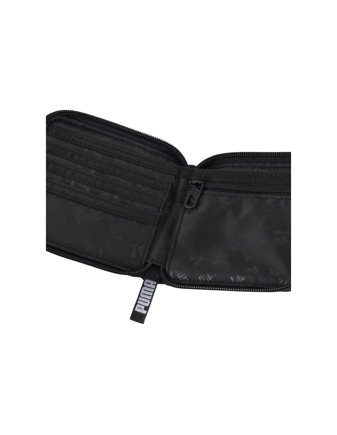 Portfel Puma Deck czarny 91729 01 Portfel Puma sprawdzi się na co dzień. Zamek błyskawiczny z praktyczną pętelką. Przegroda na banknoty. Kieszonka na bilon z zapięciem. Trzy miejsca na karty, dowód osobisty czy legitymację szkolną. Wytrzymałe materiały. Produkt powstał w co najmniej 90% z materiałów pochodzących z recyklingu. Dane techniczne:· Wymiary: 12x11x2 cm· Materiał: 100% poliester