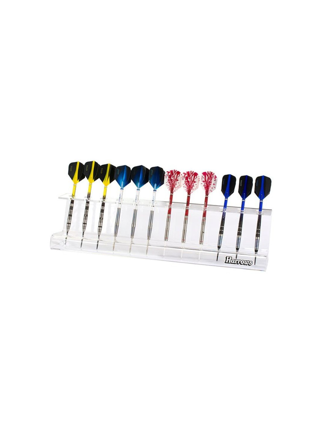 Funkcjonalny stojak wykonany z przezroczystego akrylu, przeznaczony do wygodnego przechowywania i prezentacji rzutek. Doskonały do domowej strefy gry, klubów oraz pubów, gdzie pomaga utrzymać porządek i łatwy dostęp do sprzętu.