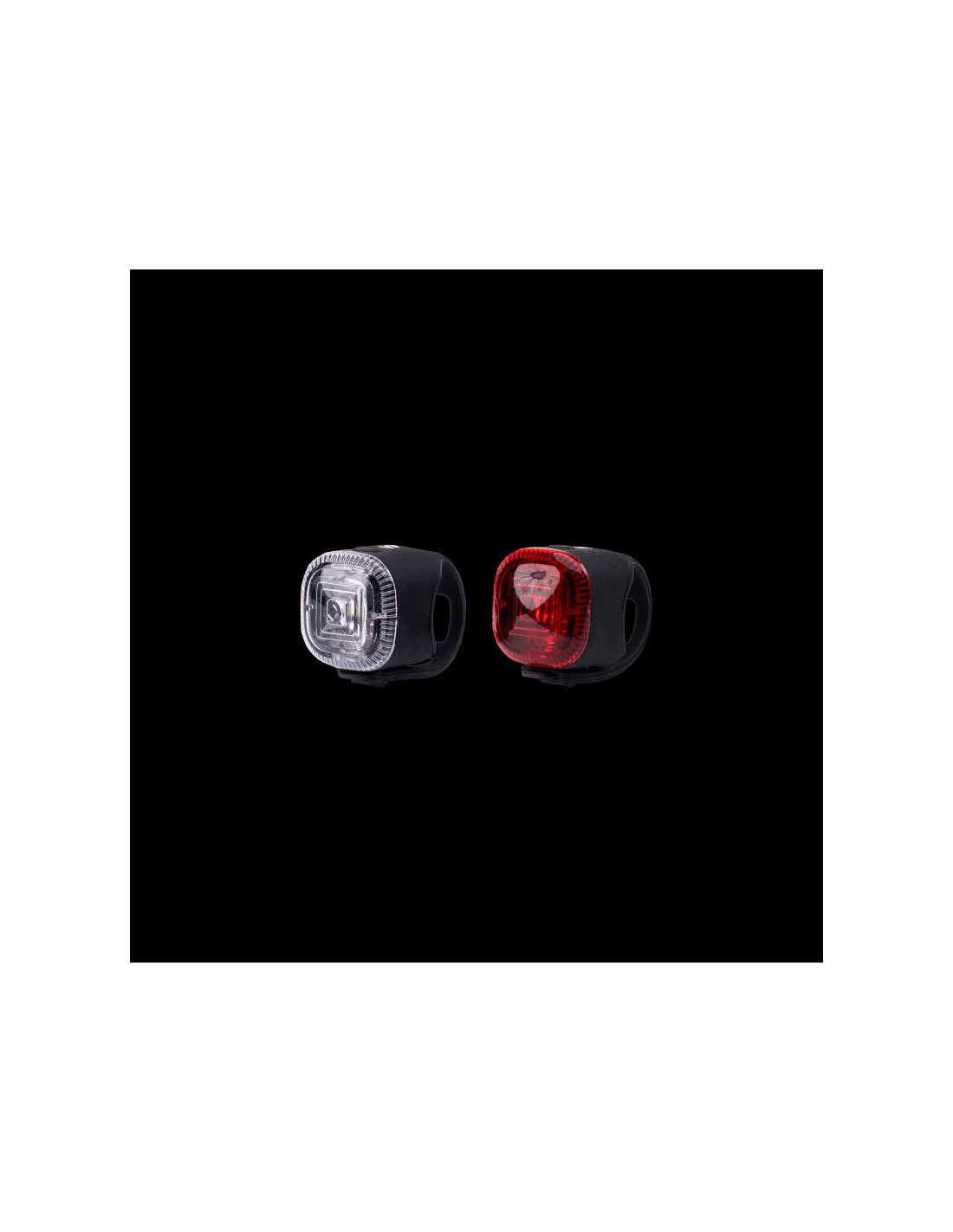 OŚWIETLENIE ROWEROWE SKŁAD MATERIAŁOWY: ABS/PMMA/SILIKON SPECYFIKACJA: LUMENY: 15/6 LM BIAŁY LED CZERWONY LED 2 TRYBY ŚWIECENIA WODOODPORNOŚĆ: IPX3