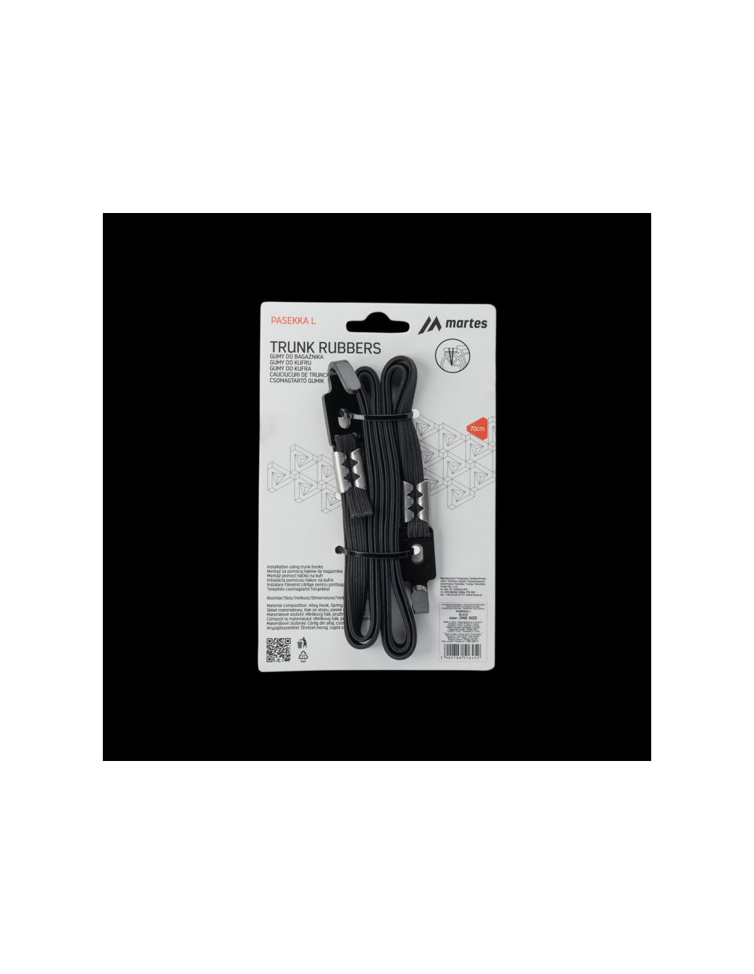 GUMY DO BAGAŻNIKA ROZMIAR: 70 cm WAGA: 56 g SKŁAD MATERIAŁOWY: PASEK: POLIESTER SPRZĄCZKA: STOP METALI
