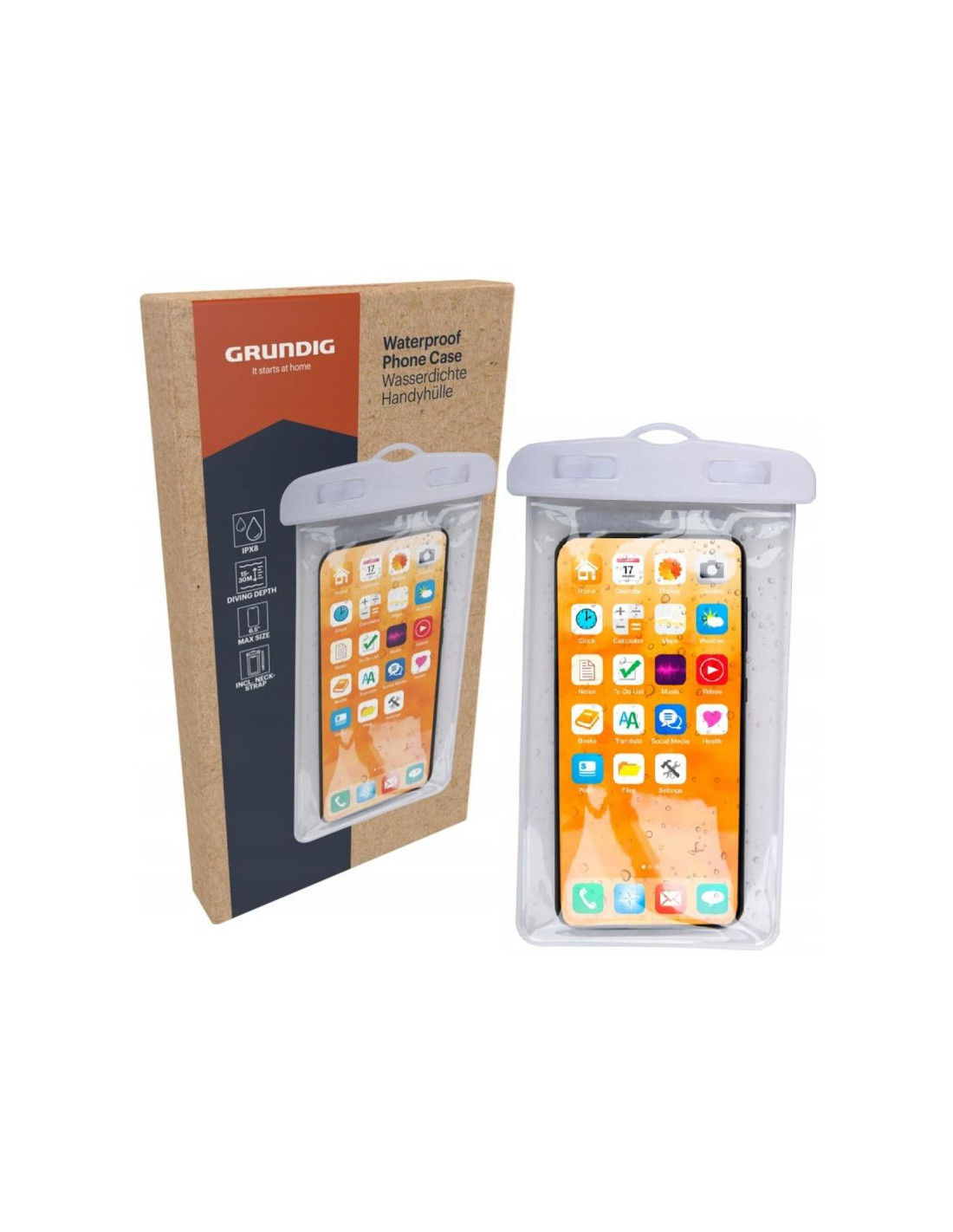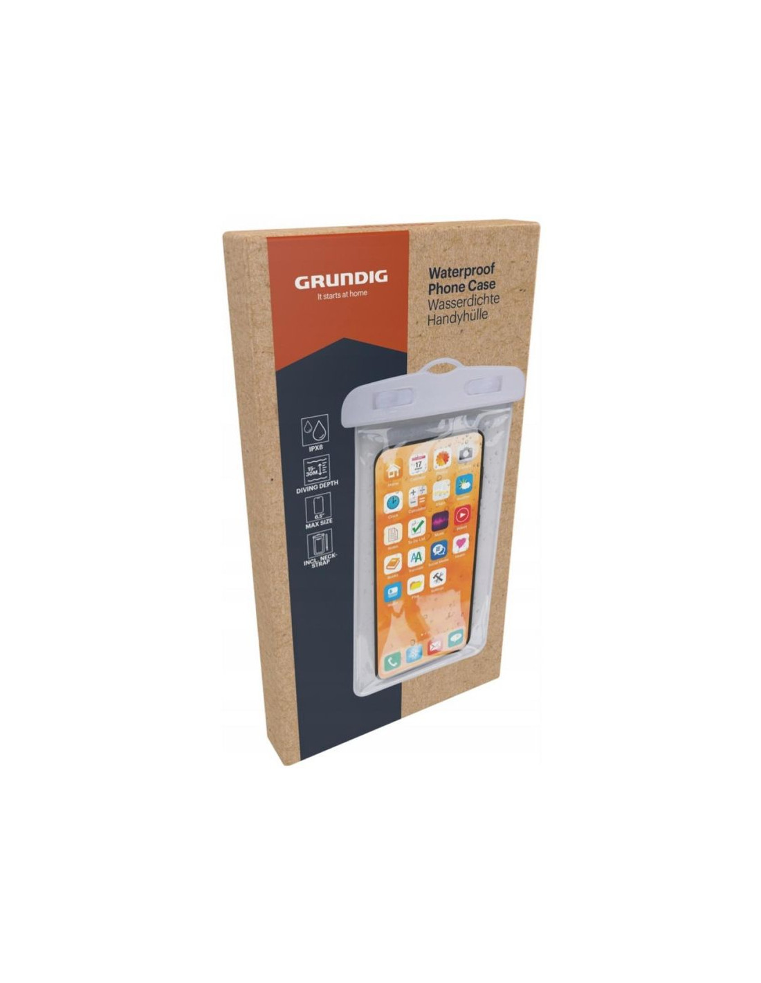 Chcesz bezpiecznie korzystać z telefonu podczas pływania, na plaży lub w czasie deszczu? WODOODPORNE ETUI POKROWIEC NA TELEFON 11X21CM PVC BIAŁE GRUNDIGzapewnia skuteczną ochronę smartfona przed wodą, wilgocią i piaskiem.