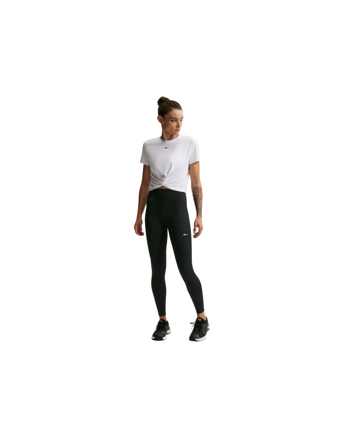 Legginsy damskie Nike One Seamless Front czarne HJ9195 013 Legginsy damskie Nike o pełnej długości sprawdzą się podczas treningów. Wysoki stan i dopasowany krój. Wykonane z miękkiego, szybkoschnącego materiału średniej grubości z technologią Nike Dri-FIT, która skutecznie odprowadza wilgoć. Konstrukcja bez przedniego szwu minimalizuje przesuwanie się tkaniny. Nieprześwitujący, elastyczny materiał. Tylna kieszeń. Materiał główny: 80% poliester, 20% elastanPodszewka klina: 100% poliester