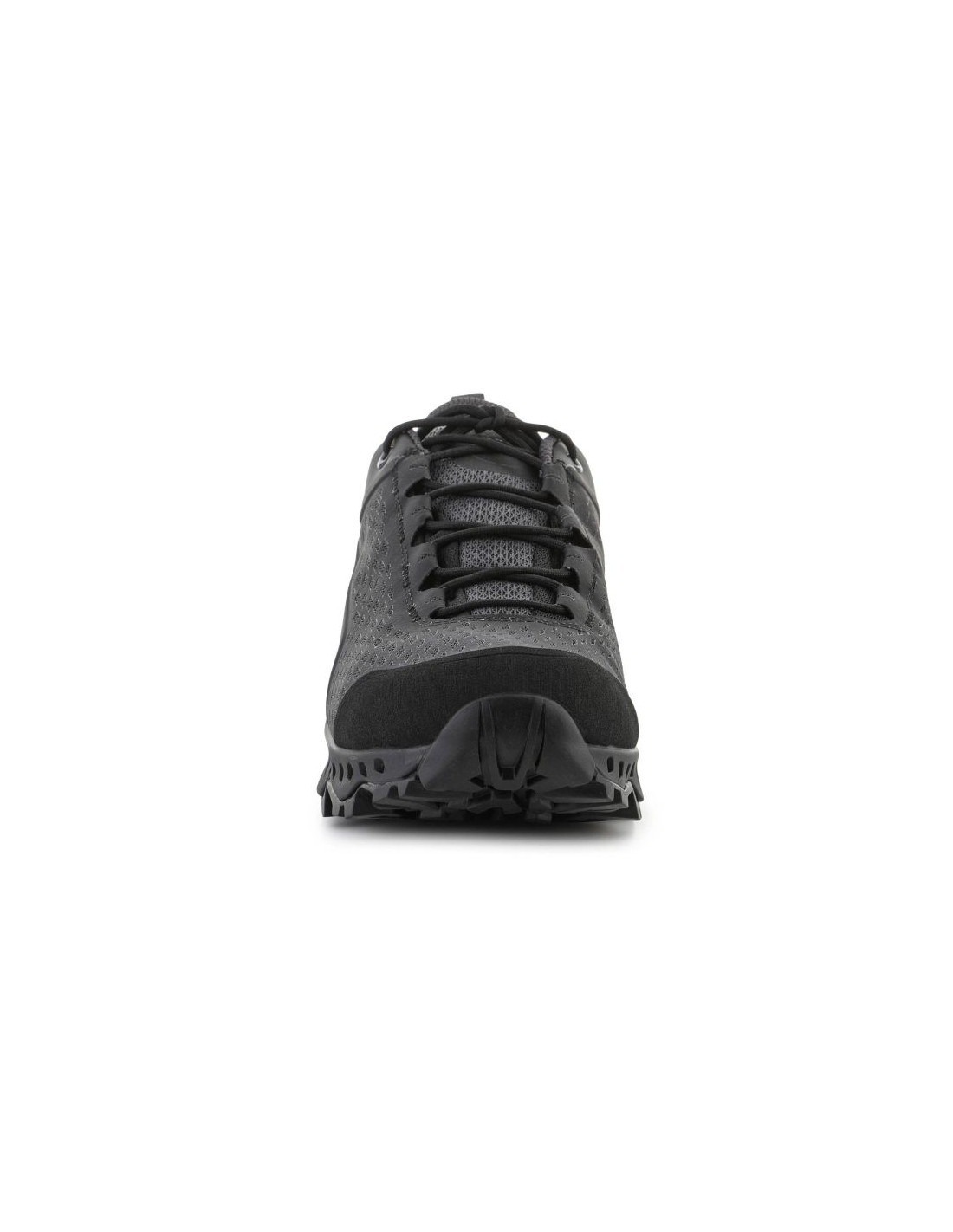 Cholewka wykonana jest z wytrzymałej i oddychającej siateczki z technologią Nano Cell 2.0, która wspiera wentylację oraz zwiększa odporność na uszkodzenia. Dodatkowe wzmocnienia w obrębie palców i pięty chronią stopę podczas poruszania się po wymagającym terenie.