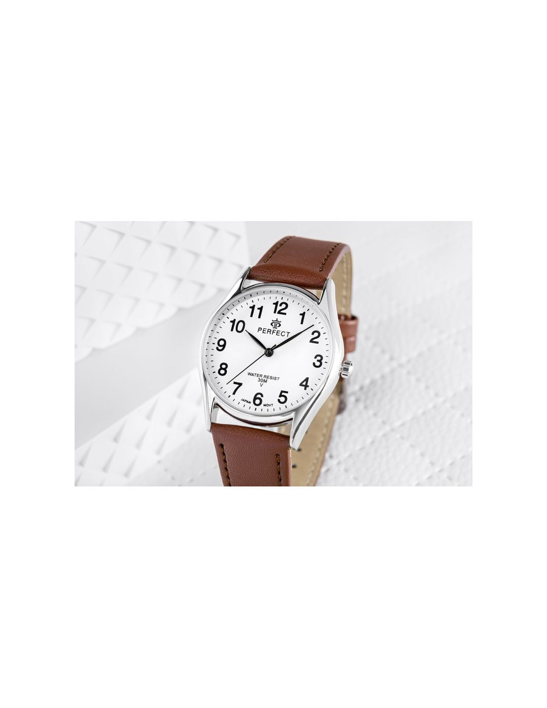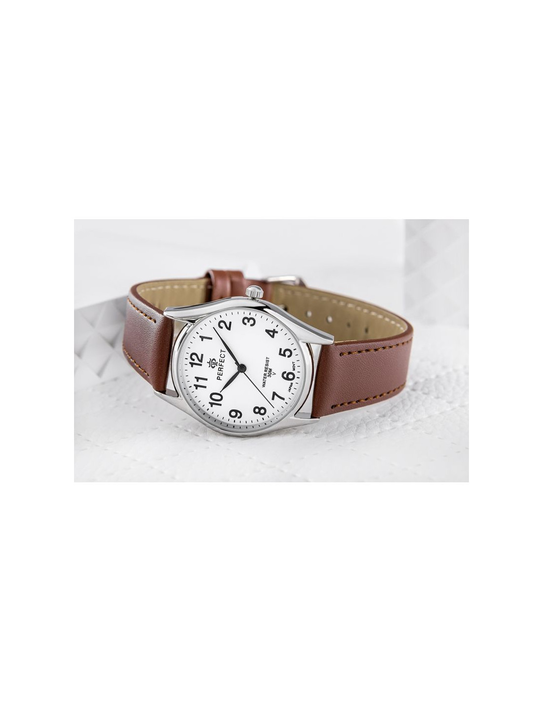 Skórzany pasek tego zegarka to kwintesencja klasy i wygody. Wykonany z najwyższej jakości materiału, komfortowo dopasowuje się do nadgarstka, oferując nie tylko trwałość, ale też elegancki wygląd. Jego miękkość zapewnia komfort noszenia na co dzień, a perfekcyjne wykończenie podkreśla charakterystyczny styl marki Perfect.