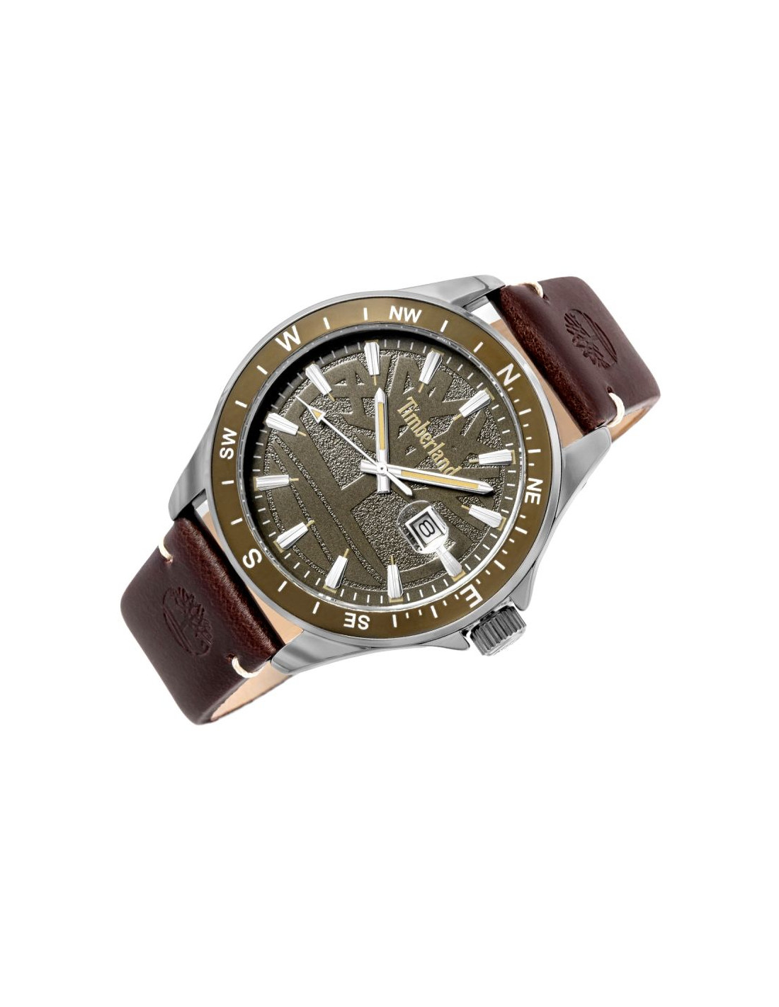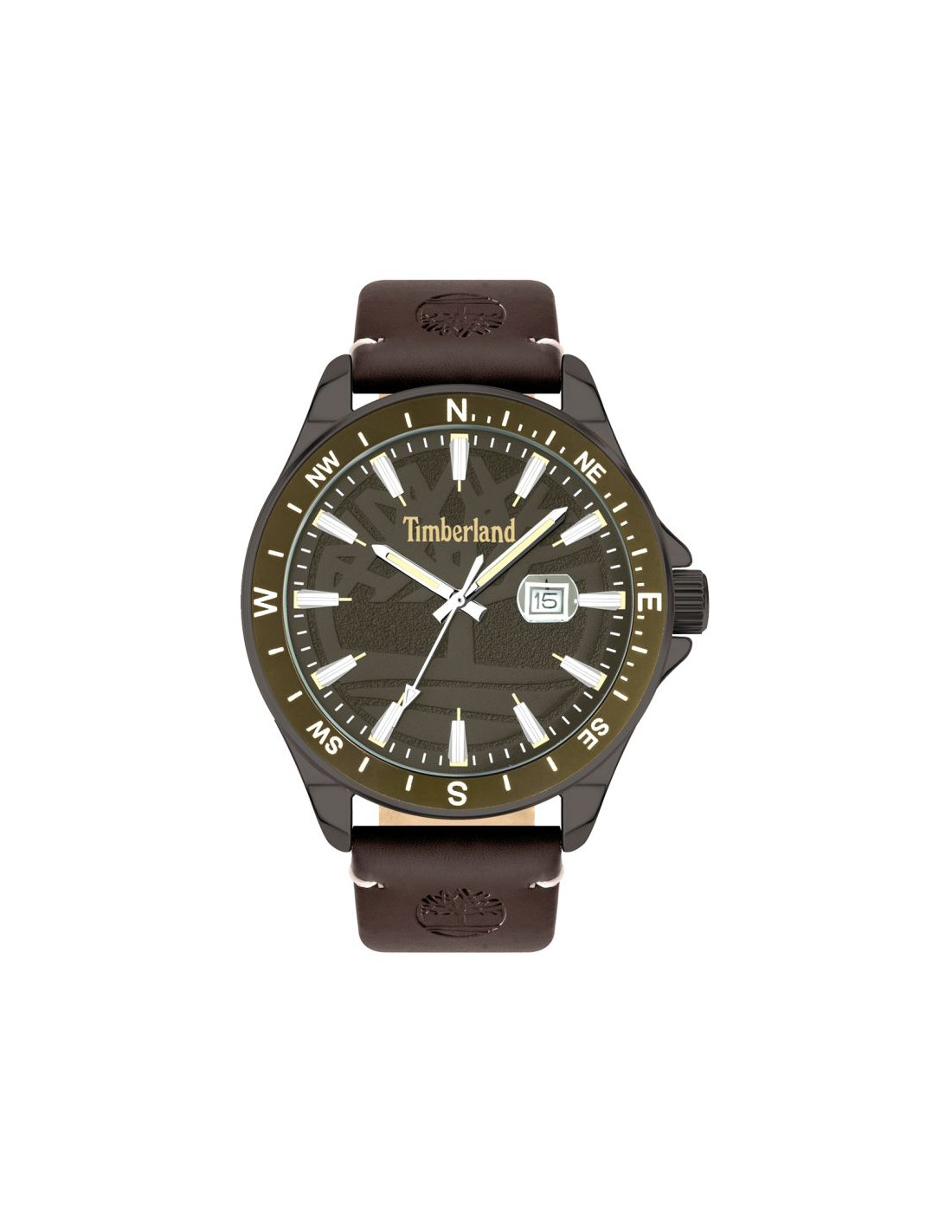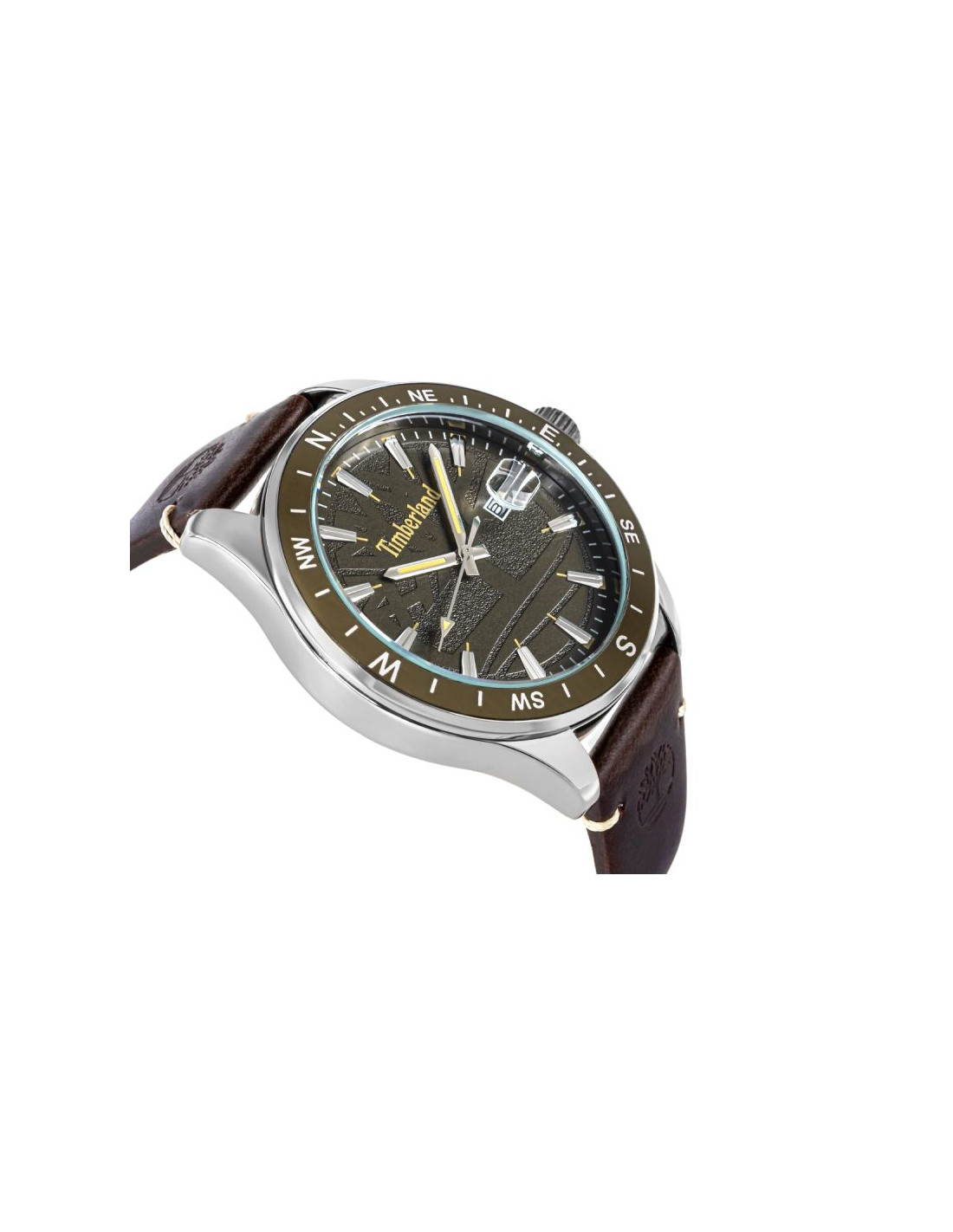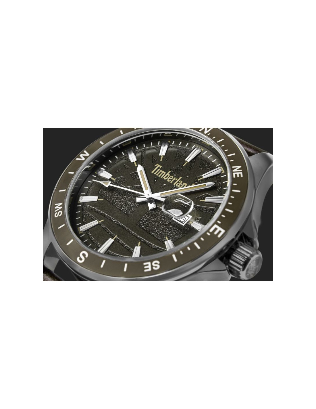 Tarcza zegarkaTimberland została zaprojektowana z wyraźnym naciskiem na czytelność i efektowny, outdoorowy wygląd inspirowany naturą. Jej trójwymiarowa konstrukcja (3D) nadaje głębi i sprawia, że każdy element jest wyraźnie odseparowany, co podkreśla solidny, techniczny charakter modelu.