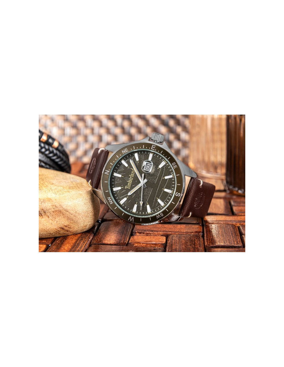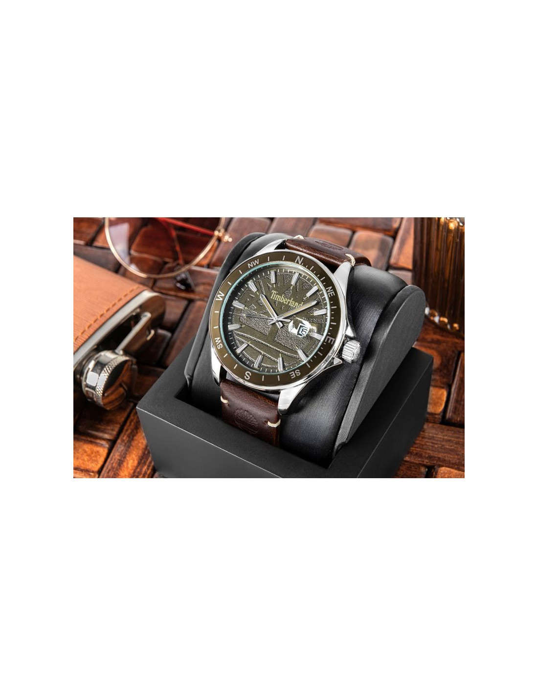 Zegarek Timberland Swampscott w tej wersji to wyraźne nawiązanie do świata outdoor, natury i prawdziwej przygody. Ciemnozielona tarcza inspirowana leśnymi odcieniami doskonale współgra z ciepłym brązem skórzanego paska, tworząc spójną, terenową stylistykę.