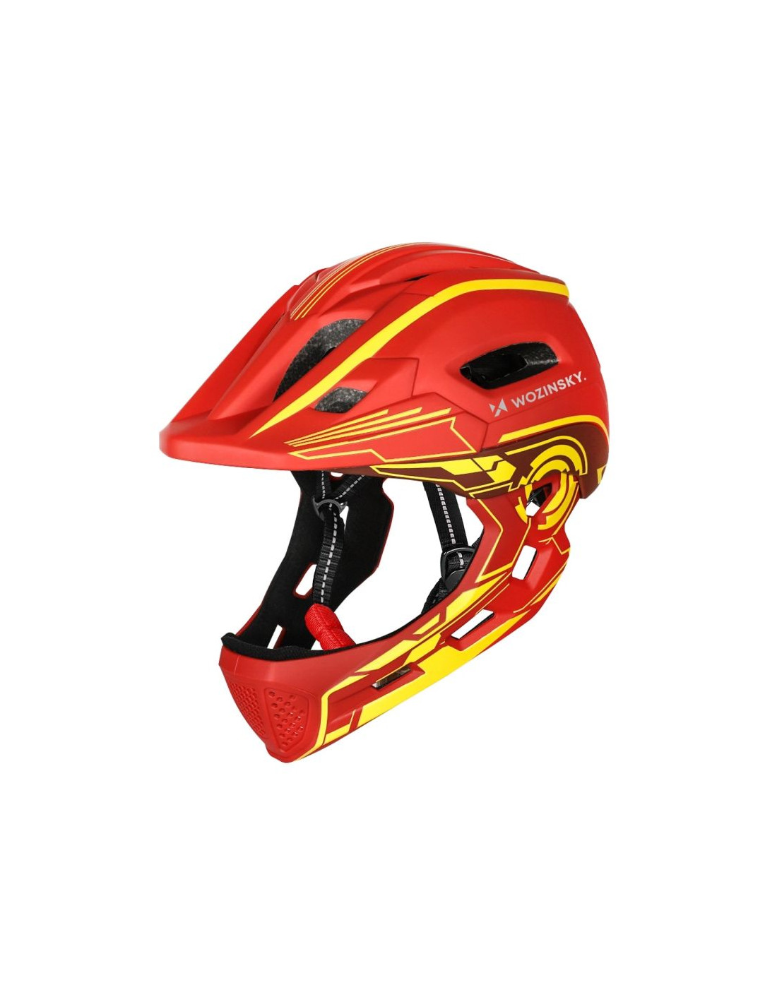 Kask fullface Wozinsky możesz idealnie dopasować do kształtu i rozmiaru głowy dziecka. Dzięki innowacyjnym zapięciom i obrotowemu kółku regulacyjnemu regulacja jest prosta i intuicyjna, co sprawia, że kask "rośnie" razem z Twoim dzieckiem. Ochronę szczęki można zdjąć w celu uzyskania większej swobody i następnie bezproblemowo zamocować dla zwiększenia bezpieczeństwa.
