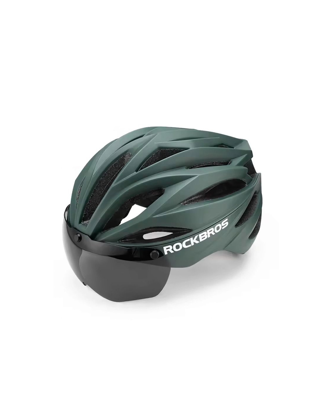 Kask rowerowy rockbros z szybką, odpinane okulary z ochroną uv, unisex - zielony