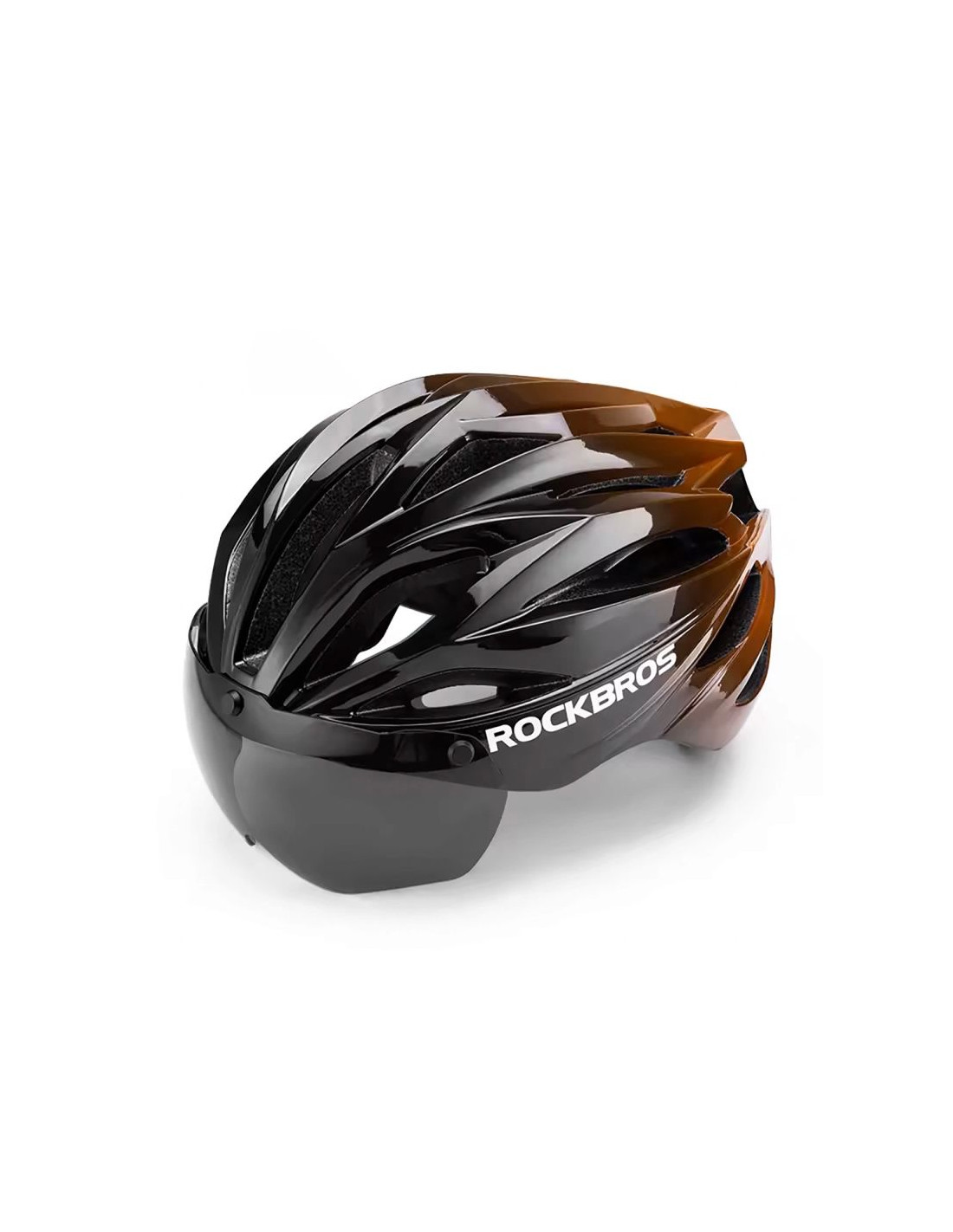 Kask rowerowy Rockbros z szybą, odpinane okulary UV, unisex – czarno-brązowy