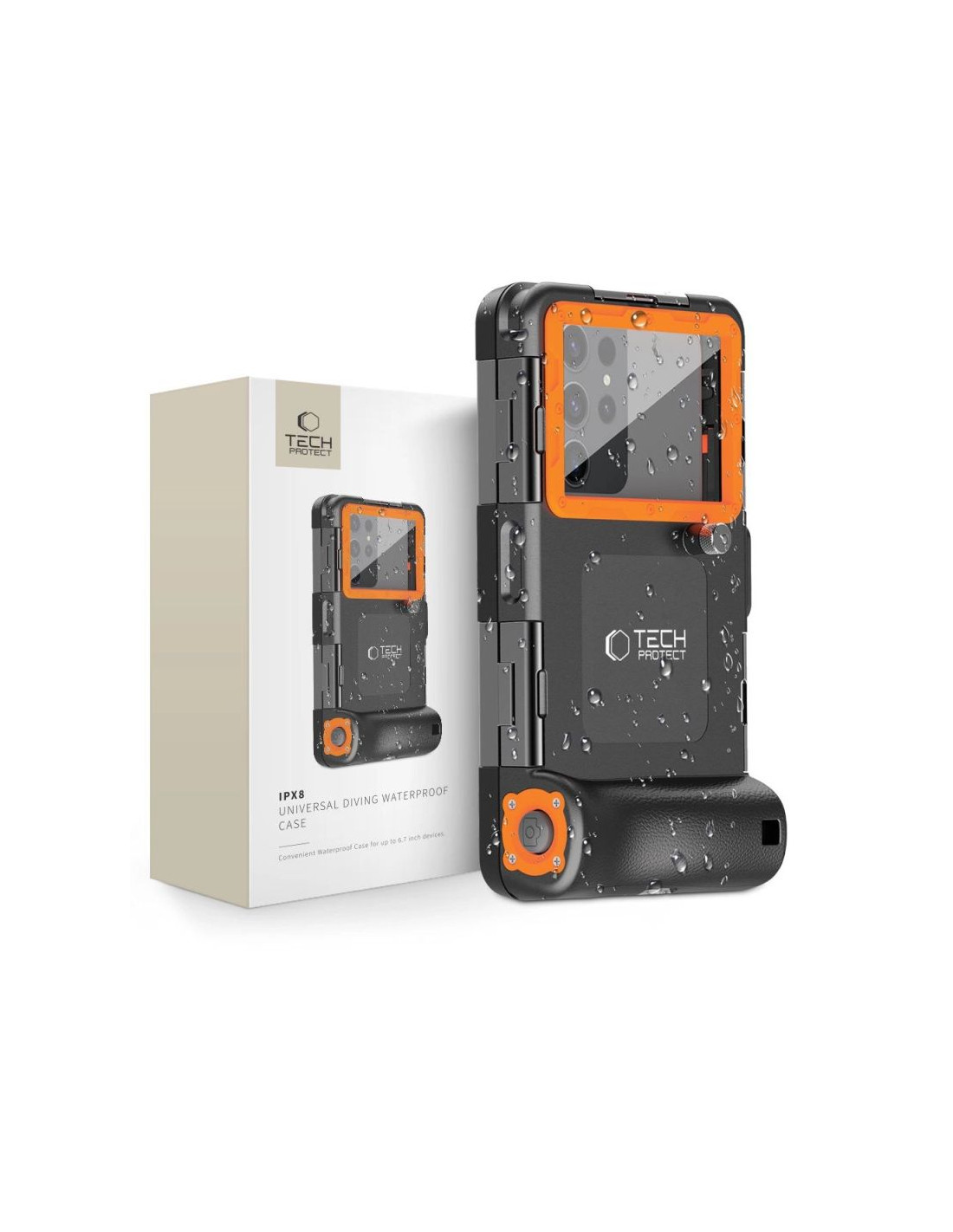 Pokrowiec tech-protect waterproof case wodoodporny ipx8 na smartfony 4.7-6.7" - czarno-pomarańczowy