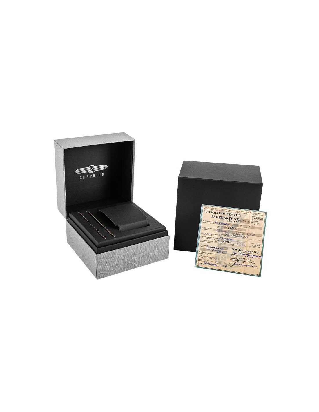Każdy zegarek marki Zeppelin jest dostarczany w wyjątkowym, eleganckim pudełku sygnowanym logo marki, które nawiązuje do dziedzictwa historycznych sterowców. To nie tylko praktyczne opakowanie, ale także prawdziwa esencja stylu i klasy, które sprawiają, że czasomierz staje się jeszcze bardziej wyjątkowy. Do zestawu dołączany jest również stylowy certyfikat inspirowany dawnymi biletami lotniczymi Zeppelin, co dodatkowo podkreśla charakter tej niezwykłej marki i jej unikalne korzenie. Takie opakowanie czyni każdy zegarek idealnym prezentem, gotowym do wręczenia – każdy detal, od solidnej konstrukcji pudełka po jego starannie zaprojektowaną estetykę, buduje poczucie luksusu i prestiżu.