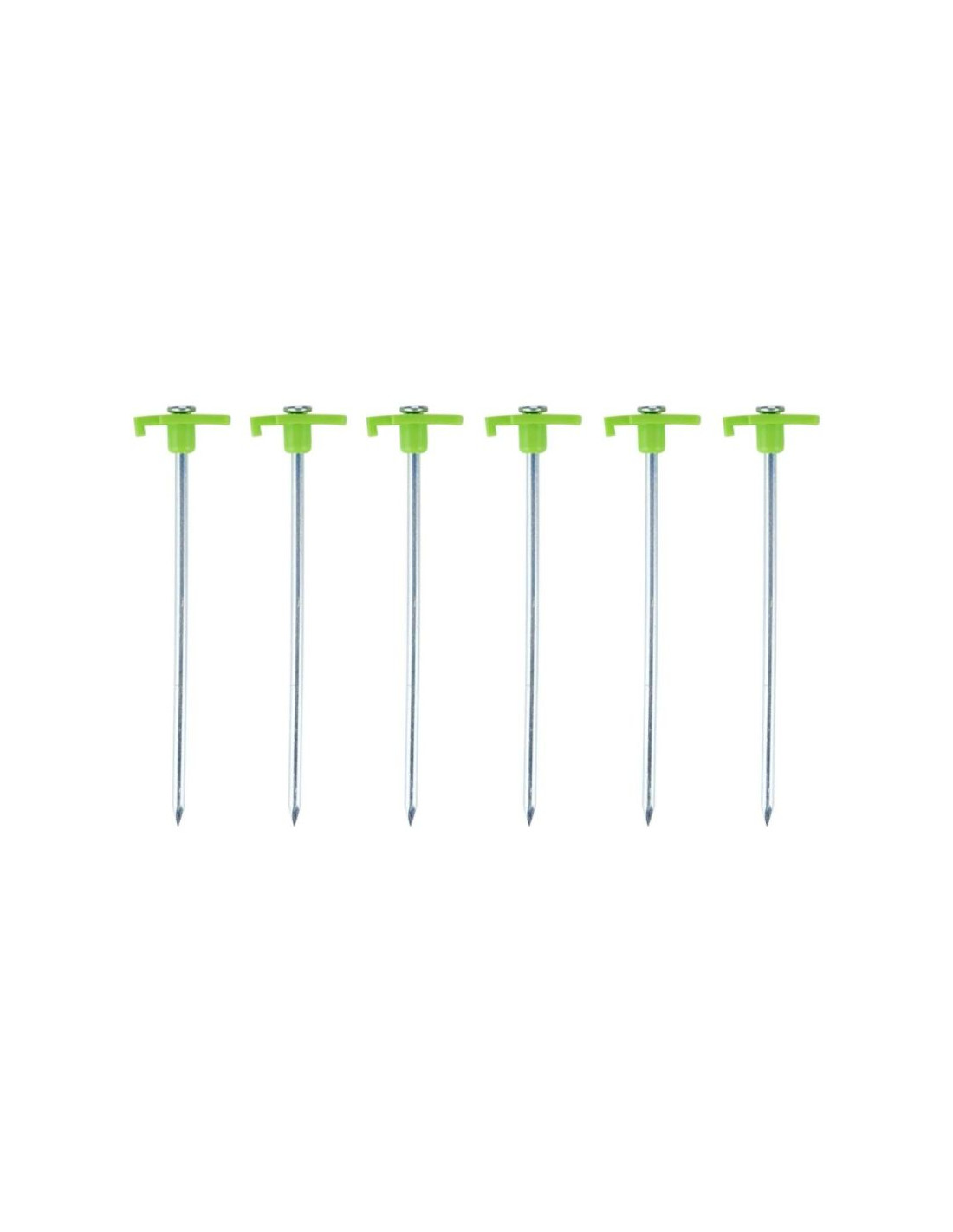 Te stalowe śledzie wyposażono w specjalne zielone zakończenia, które sprawiają, że są dobrze widoczne w piasku czy w trawie i są wygodnie w wyjmowaniu z podłoża.