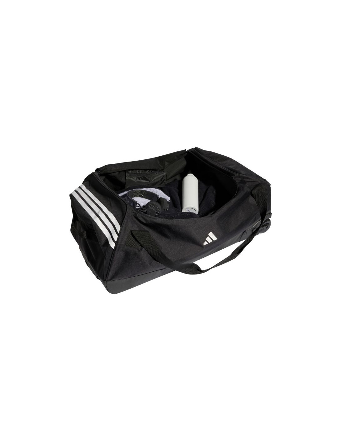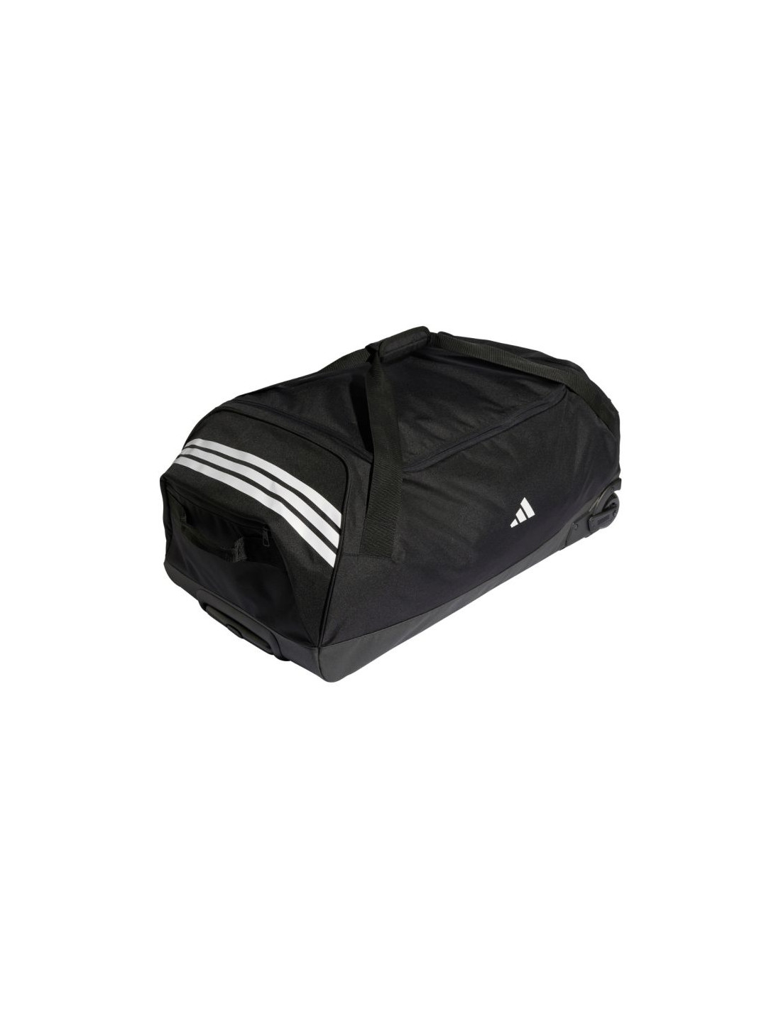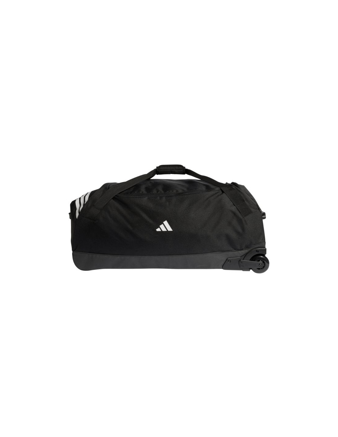 Torba adidas Tiro Trolley XL czarna JY7982 Bardzo duża torba adidas sprawdzi się podczas treningów oraz wyjazdów. Komora główna otwierana za pomocą dwubiegunowego zamka błyskawicznego. Wewnętrzna kieszonka na suwak. Boczny uchwyt. Krótkie rączki wykończone ochronną patką na rzep. Kółka znajdujące się po jednej stronie. Zapinana kieszonka z boku. Stopki izolujące od ziemi na dnie. Usztywniony, wzmocniony spód. Dane techniczne:· Wymiary: 84 cm x 38,5 cm · Pojemność: 130 l· Materiał: 100% poliester z recyklingu