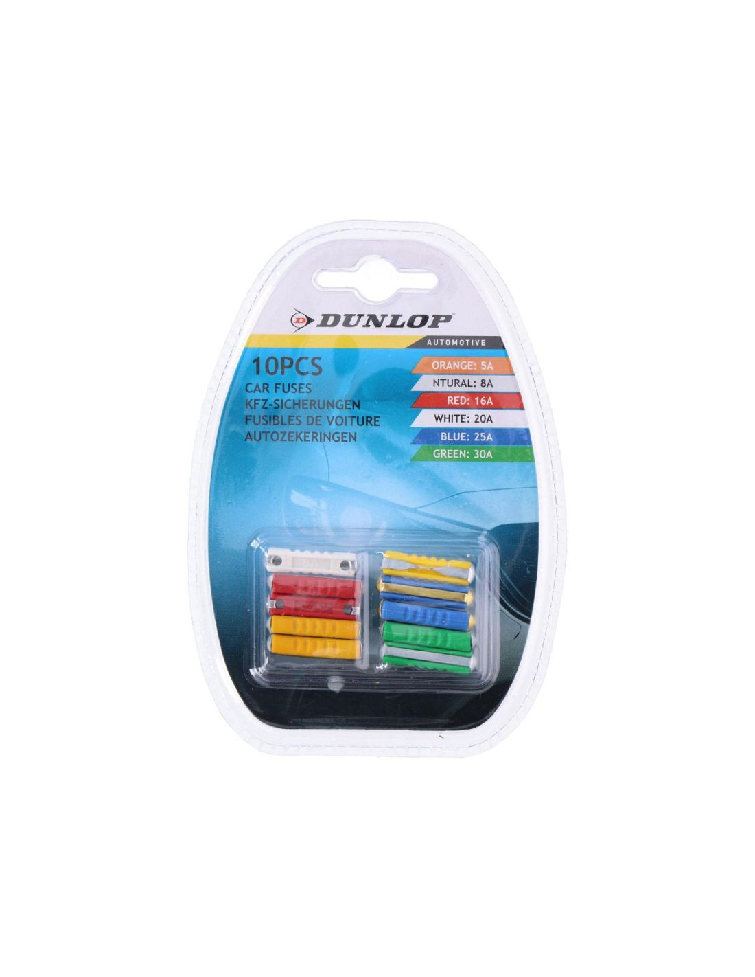 Jeśli szukasz zestawu różnych bezpieczników samochodowych zaopatrz się w zestaw kolorowych plastikowych bezpieczników samochodowych 10 szt. DUNLOP.